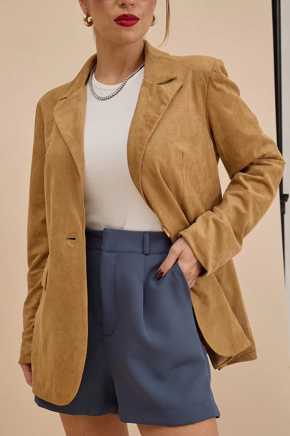 Blazer feito em couro sintético com acabamento aveludado, que remete ao suede, Com modelagem estruturada e acinturada, as ombreiras dão um ar imponente, enquanto o fechamento frontal e os bolsos embutidos trazem aquele mood clássico. Perfeito pra quem não abre mão de estilo, autenticidade e conforto. Para ficar por dentro de todas as novidades aqui da Petit Rosè siga as nossas redes sociais @amopetitrose. Avalie seu look no nosso site e receba um cupom de desconto exclusivo!