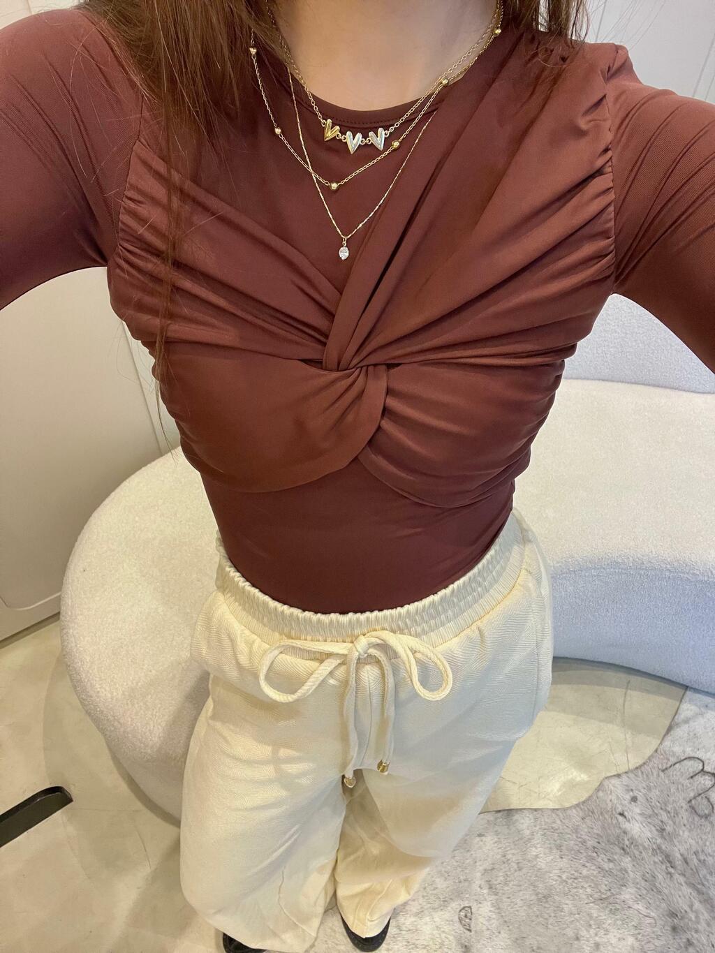 Feita em poliamida premium, leve e respirável, essa blusa une conforto e sensualidade com maestria. O destaque vai para o busto torcido com franzidos estratégicos, que criam um efeito drapeado super sofisticado, valorizando as curvas de forma natural e elegante. O tecido tem toque macio e elasticidade suave, se adaptando ao corpo como uma segunda pele — perfeita para quem ama unir movimento e estilo. As mangas longas equilibram o decote, e o caimento ajustado traz aquele ar cool Ideal pra quem quer sair do básico com classe e atitude. Use com alfaiataria, jeans ou uma saia poderosa e prepare-se pros elogios.