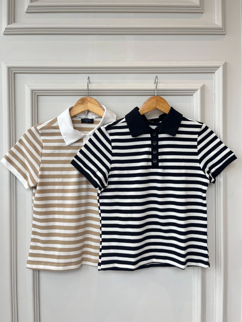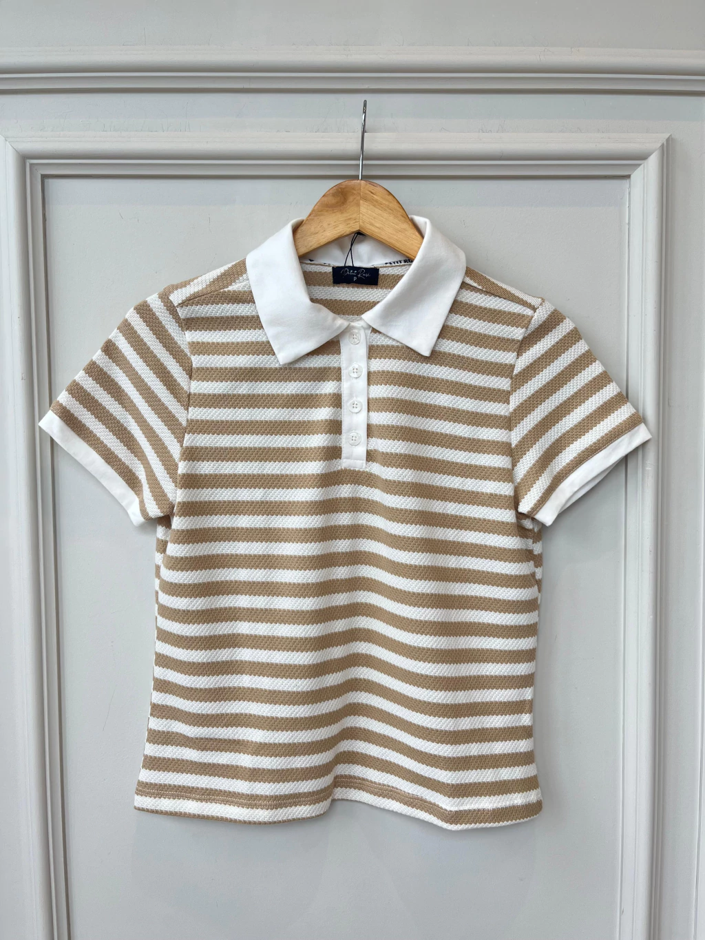 A blusa polo Grazi é confeccionado em nossa malha de tricot de algodão e viscose, listrada em cores contrastantes, com gola e peitilho em malha 100% algodão. Sua modelagem é uma polo slim, com acabamentos embutidos na gola e detalhe na manga. Uma peça confortável e disponível em cores neutras, forma uma combinação delicada e moderna com nossas saia em balonê. Para ficar por dentro de todas as novidades e lançamentos da Petit, siga nossas redes sociais @amopetitrose. Avalie seu look no nosso site e receba um cupom de desconto exclusivo!