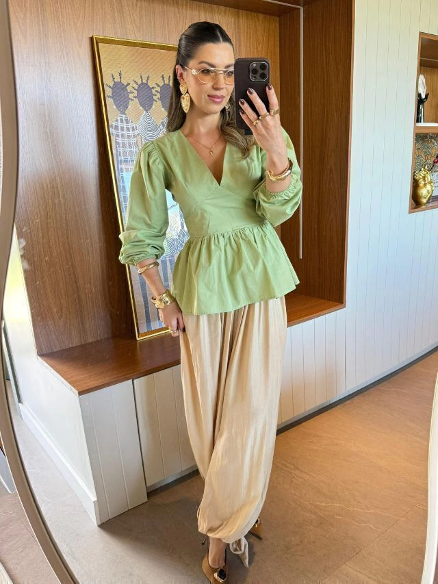 Calça Giovana, modelo Aladim, é a calça do momento. O tecido acetinado traz um toque sofisticado e leve, perfeita para composições que pedem elegância sem abrir mão da leveza e feshionismo. A modelagem ampla com amarração na barra cria um efeito drapeado que alonga e valoriza a silhueta, e trás a essência romântica, que é a marca registrada da Petit, enquanto o cós alto garante um caimento impecável, a barra tem uma amarração, A abertura com zíper invisível na lateral faz a peça ser mais confortável ao vestir. Versátil e cheia de personalidade, transita do look resort chic ao urbano moderno com apenas uma troca de acessórios. Para ficar por dentro de todas as novidades do mundo Petit Rosè siga as nossas redes sociais @amopetitrose. Avalie seu look no nosso site e receba um cupom de desconto exclusivo!