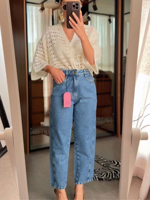 A Calça Jeans Baggy Mirabelle é aquela peça que mistura conforto absoluto com estilo cool na medida certa. Confeccionada em denim de lavagem azul clássica, ela traz modelagem baggy moderna, cintura alta e caimento soltinho que valoriza sem marcar. O design clean, aliado ao toque estruturado do jeans, cria uma silhueta descomplicada e super atual, perfeita para compor desde produções mais casuais até looks sofisticados com salto. Versátil, atemporal e com aquele toque effortless que a gente ama, a Mirabelle chega para ser a sua nova queridinha do guarda-roupa. Para ficar por dentro de todas as novidades aqui da Petit Rosè siga as nossas redes sociais @amopetitrose. Avalie seu look no nosso site e receba um cupom de desconto exclusivo!