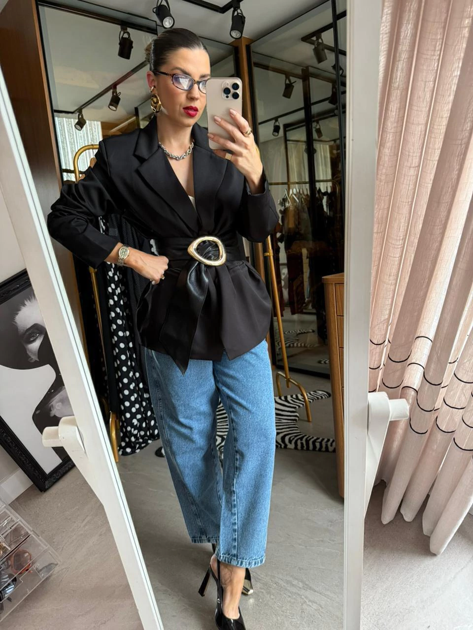 Alongamento instantâneo da silhueta e aquela sensação de “tudo no lugar”.