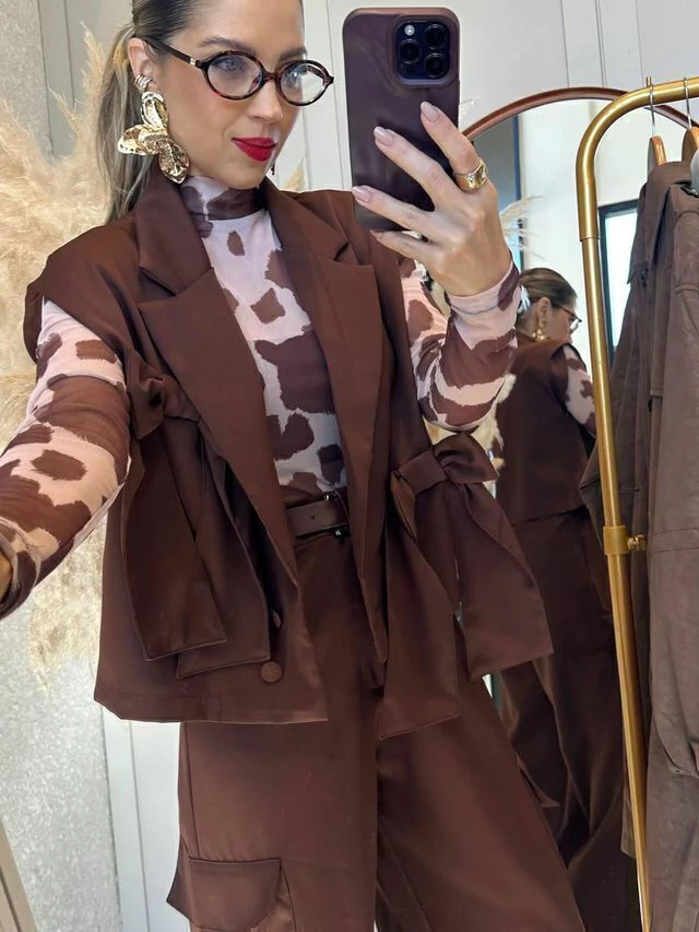 Colete Genevive, confeccionado em alfaiataria premium. A modelagem mistura o tradicional com um toque romântico e nada óbvio, com lapela clássica e abotoamento frontal, o destaque fica por conta dos laços aplicados que trazem charme, movimento e um toque girl boss a peça. A peça tem estrutura firme, acabamento impecável e comprimento levemente encurtado, perfeito para compor com calças de cintura alta ou sobre camisas para um visual de impacto. Um item que une elegância, personalidade e originalidade na medida certa. Para ficar por dentro de todas as novidades do mundo Petit Rosè siga as nossas redes sociais @amopetitrose. Avalie seu look no nosso site e receba um cupom de desconto exclusivo!