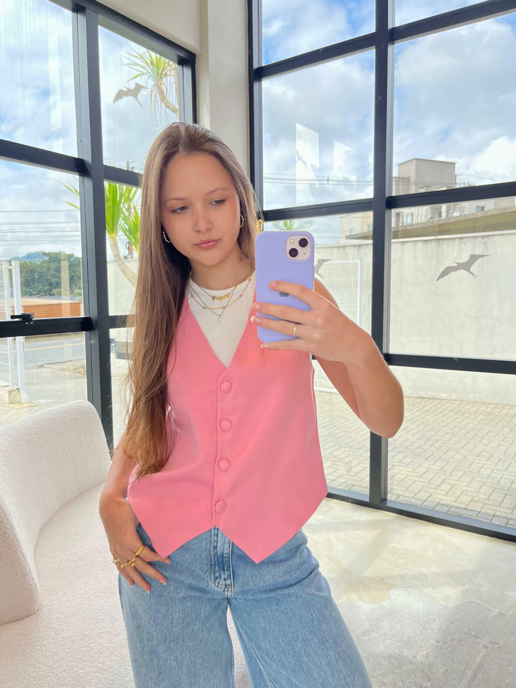 O Colete de Alfaiataria Pandora é a peça-chave para quem busca um look sofisticado com toque moderno. Confeccionado em alfaiataria premium, ele traz estrutura impecável e caimento elegante, valorizando a silhueta com leveza. Seu design conta com decote em V, fechamento frontal por botões encapados e barra em bico, detalhes que adicionam personalidade à peça. Versátil e atemporal, o Pandora transita facilmente entre produções formais e casuais: combine com calça de alfaiataria para um visual chic ou aposte no jeans para um contraste fashion e descomplicado. Para ficar por dentro de todas as novidades e lançamentos da Petit, siga nossas redes sociais @amopetitrose. Avalie seu look no nosso site e receba um cupom de desconto exclusivo!