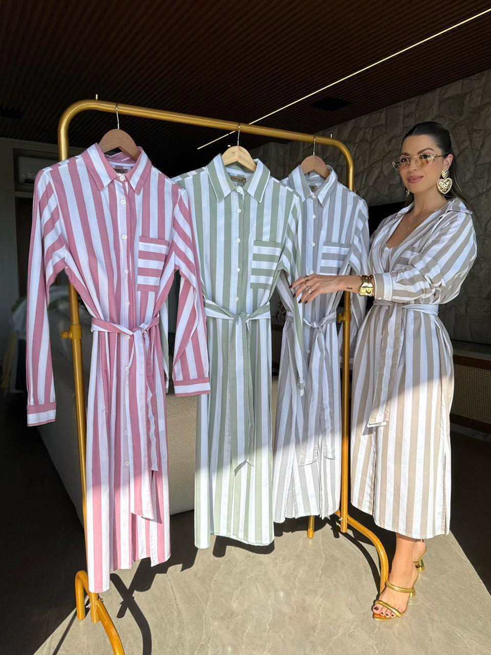 O Conjunto Mali traz o charme atemporal das listras em uma proposta moderna e versátil. Com modelagem leve e refinada, o conjunto é composto por uma Chemise de mangas longas com gola clássica, fechamento por botões e bolso frontal, combinando com um Top, que garante conforto e elegância em todas as ocasiões. Confeccionado em algodão de toque suave e estrutura encorpada, o Conjunto Mali une praticidade e estilo em uma peça perfeita para o dia a dia ou para composições mais elaboradas. As listras verticais alongam a silhueta, enquanto o cinto-faixa na cintura adiciona um toque feminino e sofisticado. Para ficar por dentro de todas as novidades aqui da Petit Rosè siga as nossas redes sociais @amopetitrose. Avalie seu look no nosso site e receba um cupom de desconto exclusivo!