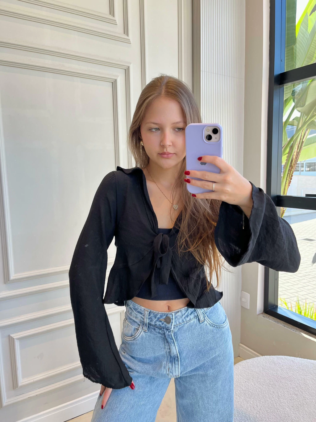Cropped Mirabel em crepe premium com amarração frontal, mangas flare e decote em “V”, ideal para looks versáteis e estilosos do dia à noite. Combine com jeans, saias ou vestidos para um visual boho-chic. Para ficar por dentro de todas as novidades e lançamentos da Petit, siga nossas redes sociais @amopetitrose