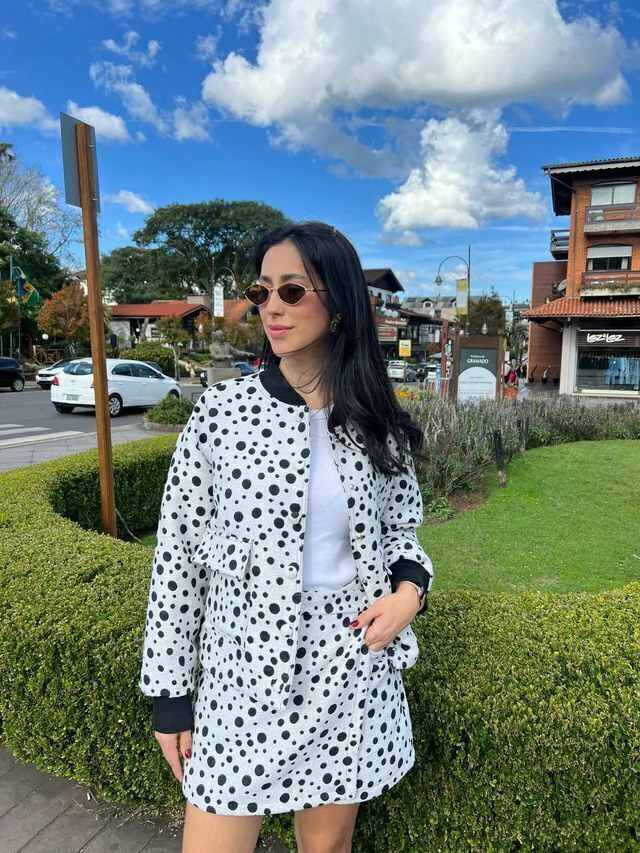 O Conjunto Magnóllia é feito em jacquard premium com poá desenhado na própria trama. Possui toque macio, textura encorpada e caimento impecável. A jaqueta bomber tem shape levemente amplo, bolsos frontais, botões encapados e lapela, contrastando com a casualidade da gola e punho em retilínea. A peça une sofisticação, conforto e estilo moderno. Para ficar por dentro de todas as novidades aqui da Petit Rosè siga as nossas redes sociais @amopetitrose. Avalie seu look no nosso site e receba um cupom de desconto exclusivo!