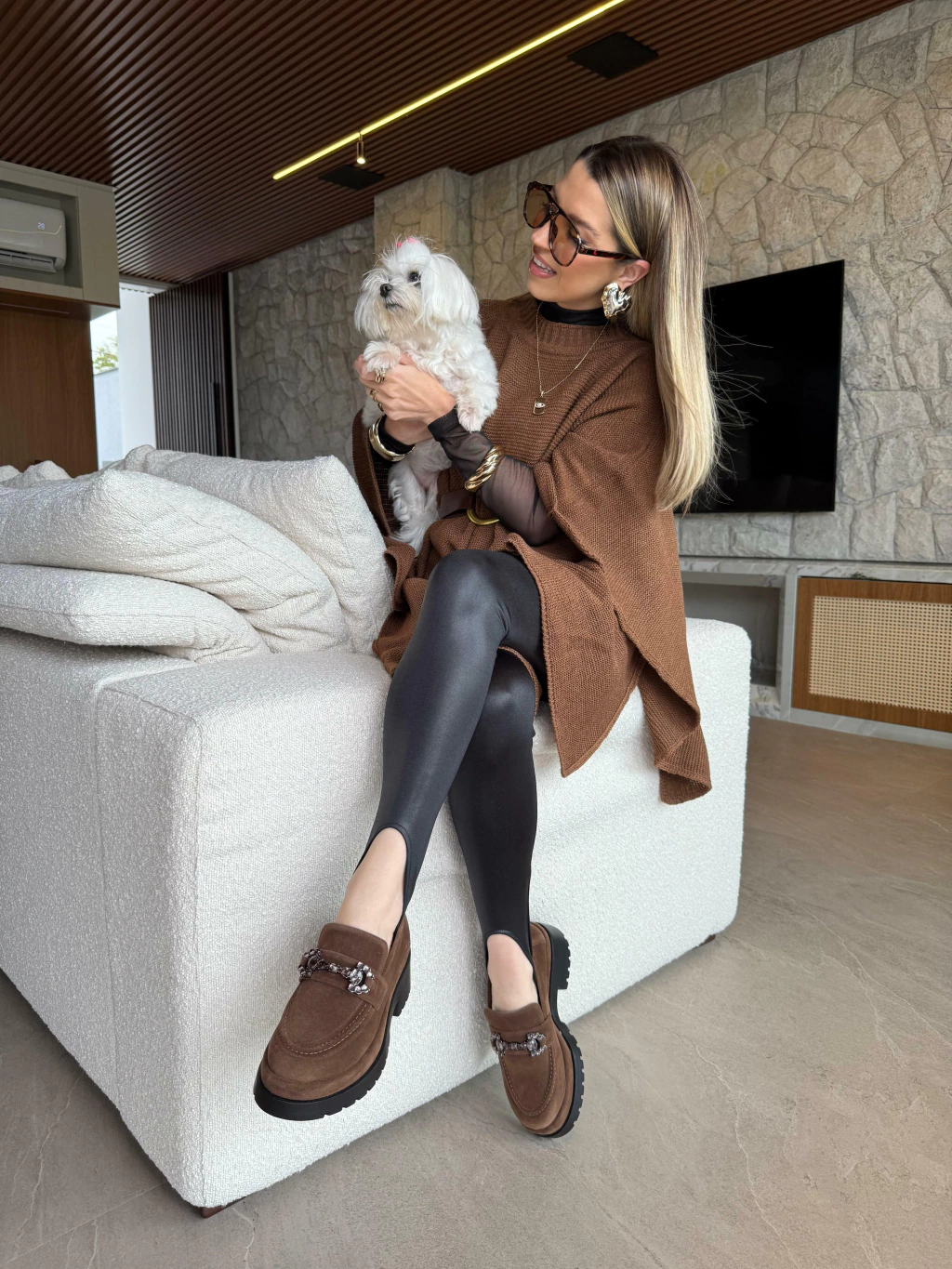 Legging fuseau Malena é a peça do momento, confeccionada eml cirrê, poliamida e elastano com acabamento brilhoso e textura macia, ela une conforto, estilo e um toque futurista. O design com recorte de passa-pé garante caimento impecável e traz aquele toque cool digno de it girls. Perfeita para compor looks de inverno com ponchos, tricôs oversized e loafers robustos. Uma peça versátil, que vai do sofá à rua com sofisticação e atitude. Para ficar por dentro de todas as novidades aqui da Petit, e para ver mais looks de inspiração, siga nossas redes sociais @amopetitrose. Avalie seu look no nosso site e receba um cupom de desconto exclusivo!