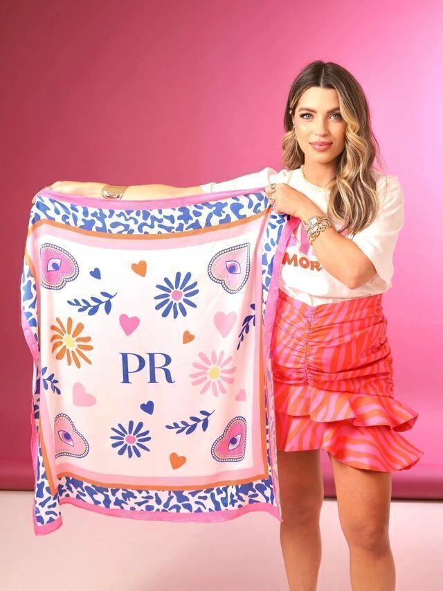Com uma estampa colorida e delicada, o lenço traz elementos que reforçam a mensagem da campanha, enquanto os tons de rosa, em destaque, celebram a força e a união feminina nesse movimento de cuidado e prevenção.