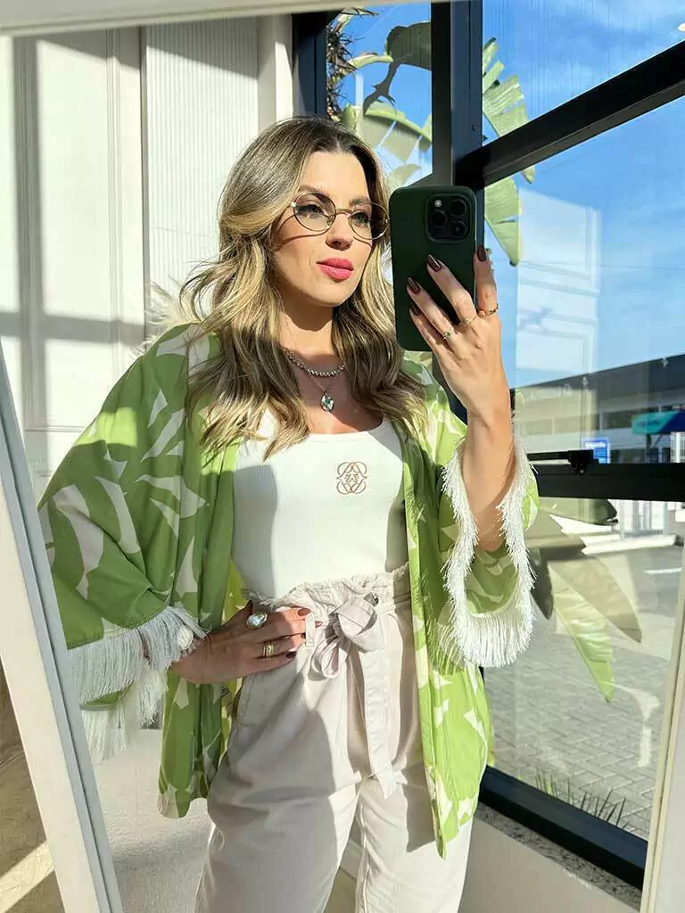 Kimono Martini é um modelo mais over e amplo, então permite que tenha um caimento perfeito no corpo em todos os tamanhos. O Kimono ainda contam com o detalhe de franjas que além de estar em alta nas passarelas recentes, tem toda essa vibe veraneia que o modelo possui. A dica da Petit é usar com a Calça Lavinia, deixando seu look ainda mais harmonioso! Para ficar por dentro de todas as novidades do mundo Petit Rosè siga as nossas redes sociais @amopetitrose.