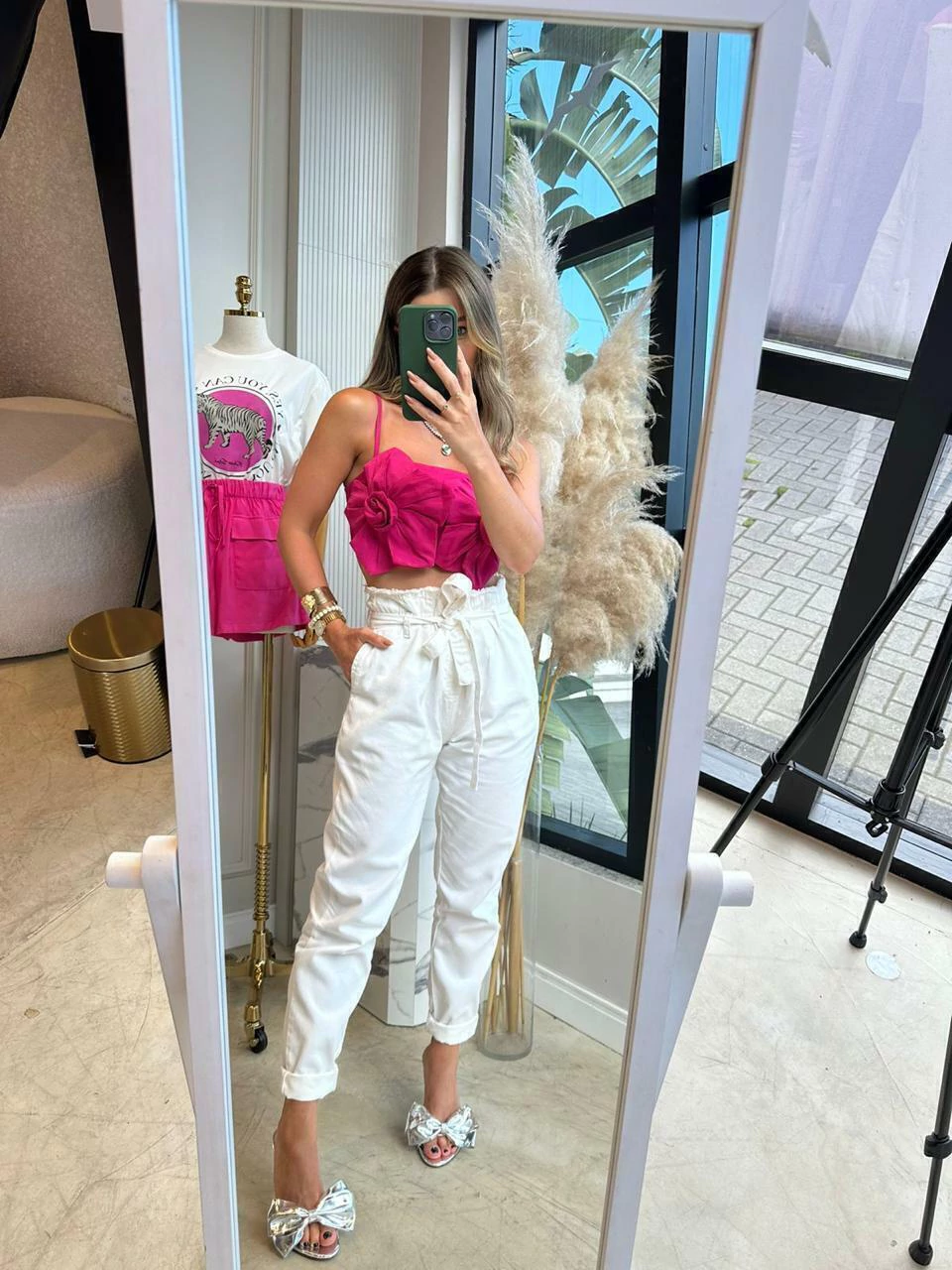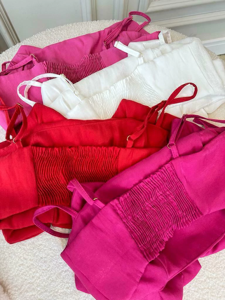 O top Jasmine é feito em viscose Glow super Fresh. Ele possui alças com regulador e as costas dele é em lastex, o que permite que ele vista perfeitamente se encaixando a anatomia do corpo. Para ficar por dentro de todas as novidades do mundo Petit Rosè siga as nossas redes sociais @amopetitrose.
