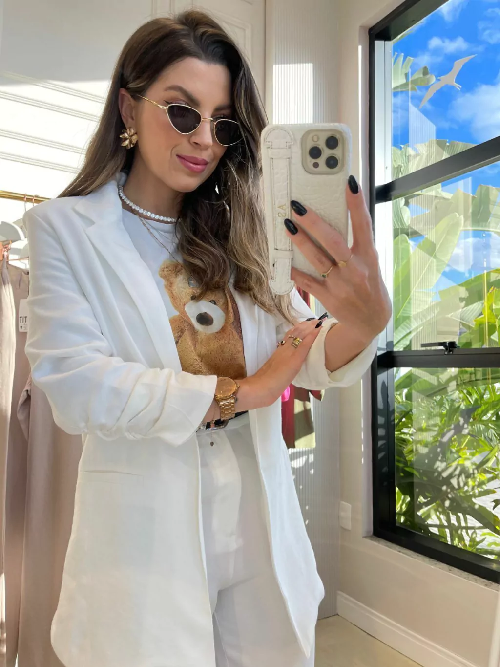 Blazer de alfaiataria alongado, com gola lapela e franzido na manga, como detalhe da peça. O modelo com abertura frontal total é moderno e super elegante. A dica da Petit é combinar com a Calça Thaissa, deixando o look ainda mais estiloso. Para ficar por dentro de todas as novidades e lançamentos da Petit, é só seguir as nossas redes sociais @amopetitrose.