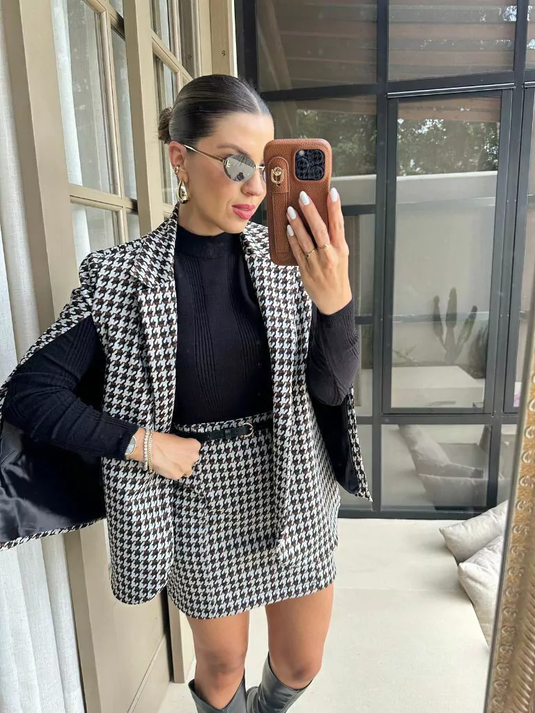 Saia Jacquard Sophia Petit Rosè, confeccionado em tecido composto por malha jacquard de alta qualidade, este é o blazer perfeito para adicionar sofisticação a qualquer look.O blazer "Sophia" apresenta uma gola em lapela que confere um toque clássico e refinado, ideal para momentos formais e descontraídos. Sua abertura dupla proporciona conforto e praticidade, permitindo que você o use aberto ou fechado conforme o seu estilo. Para ficar por dentro de todas as novidades aqui da Petit, e para ver mais looks de inspiração, siga nossas redes sociais @amopetitrose