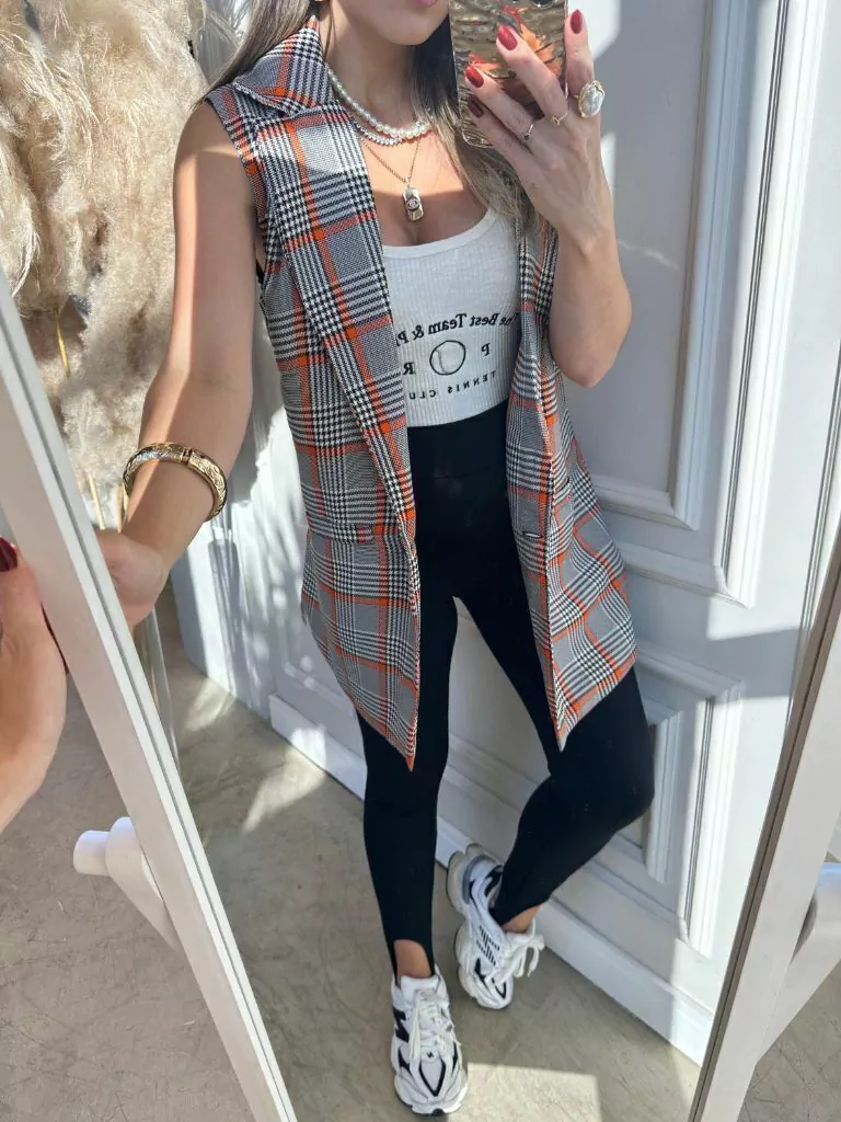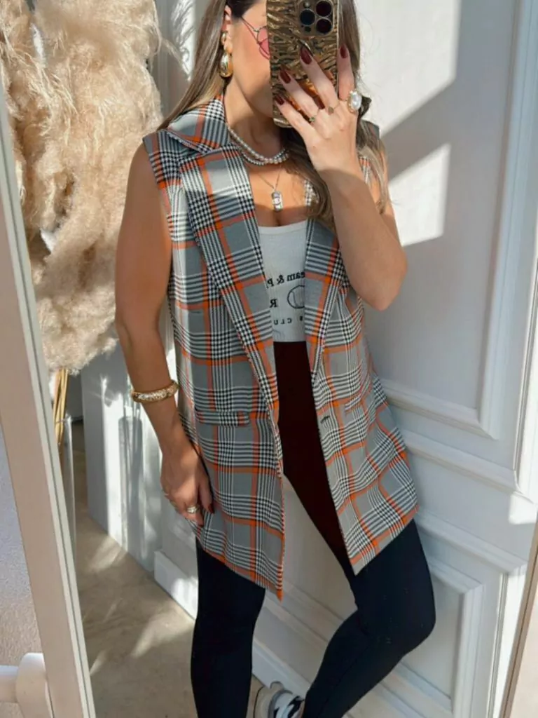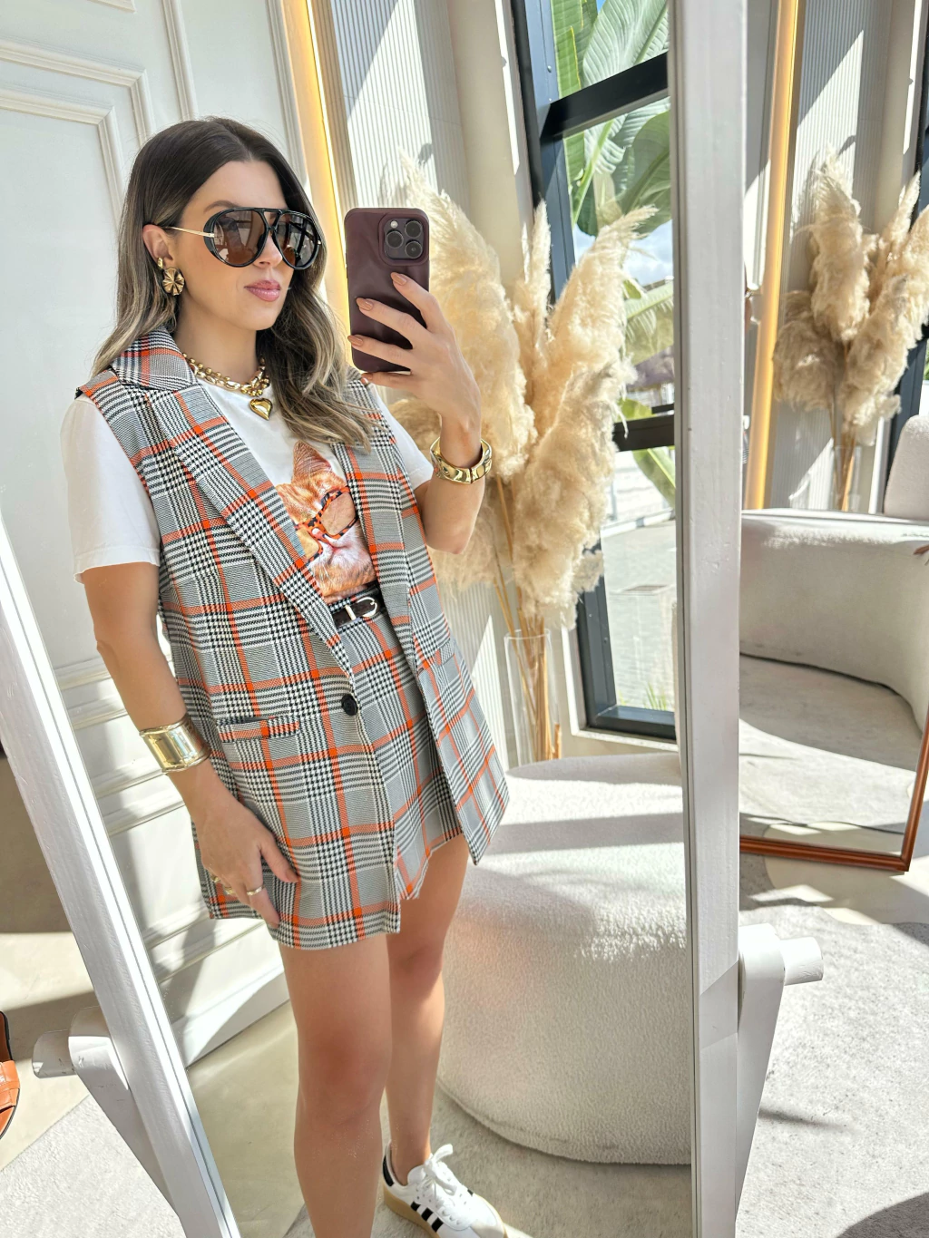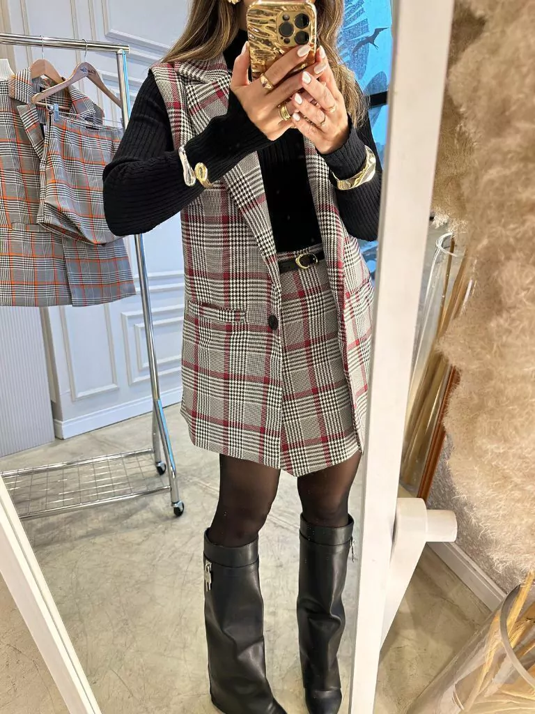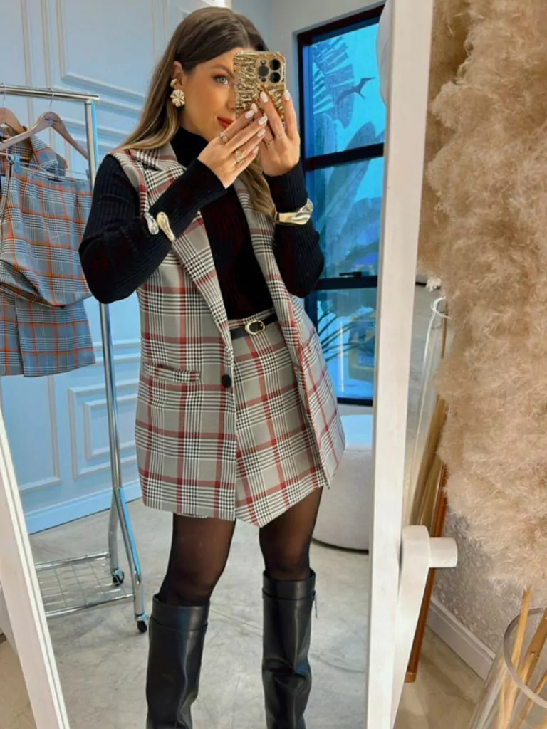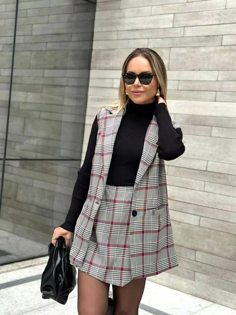 O Colete alongado Gales é feito de tecido de alfaiataria de alta qualidade com padronagem príncipe de Gales, garantindo durabilidade e conforto. Sua modelagem alongada oferece um visual moderno e elegante, valorizando a silhueta, com gola de blazer que permite várias combinações. Possui forro embutido para acabamento interno perfeito e maior conforto. Ideal para aprimorar o guarda-roupa de trabalho ou adicionar sofisticação ao look casual, mantendo a elegância. Para ficar por dentro de todas as novidades aqui da Petit Rosè siga as nossas redes sociais @amopetitrose.