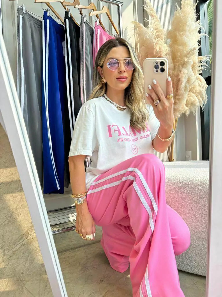 A Calça Track Fran une a sofisticação da alfaiataria ao conforto do elastano, com modelagem wide leg e cintura de elástico, destacando-se pelas faixas laterais contrastantes. Disponível em cores neutras e tendência, é uma peça moderna, versátil e cheia de estilo. Para ficar por dentro de todas as novidades do mundo Petit Rosè siga as nossas redes sociais @amopetitrose.