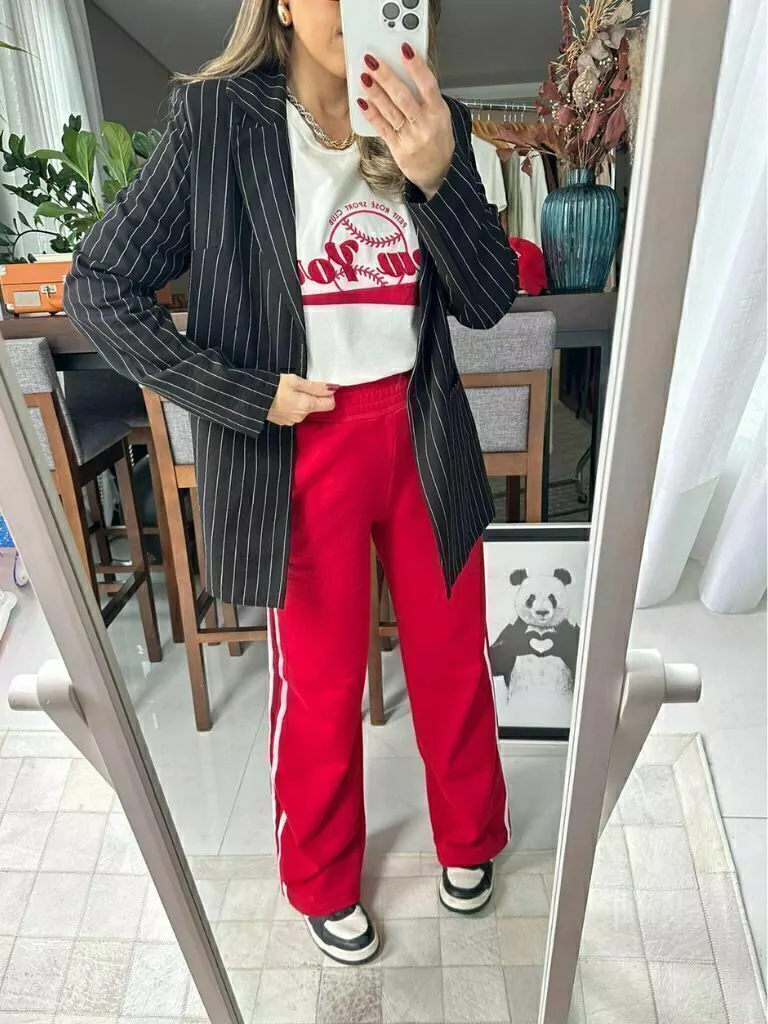Calça track pants com modelagem wide leg, proporcionando conforto e estilo. Conta com um bolso funcional para praticidade no dia a dia. O elástico no cós garante um ajuste perfeito e flexível. Ideal para atividades físicas ou um look casual moderno. Disponível em diversas cores e tamanhos. Feita com material de alta qualidade, oferecendo durabilidade e conforto. Para ficar por dentro de todas as novidades do mundo Petit Rosè siga as nossas redes sociais @amopetitrose.