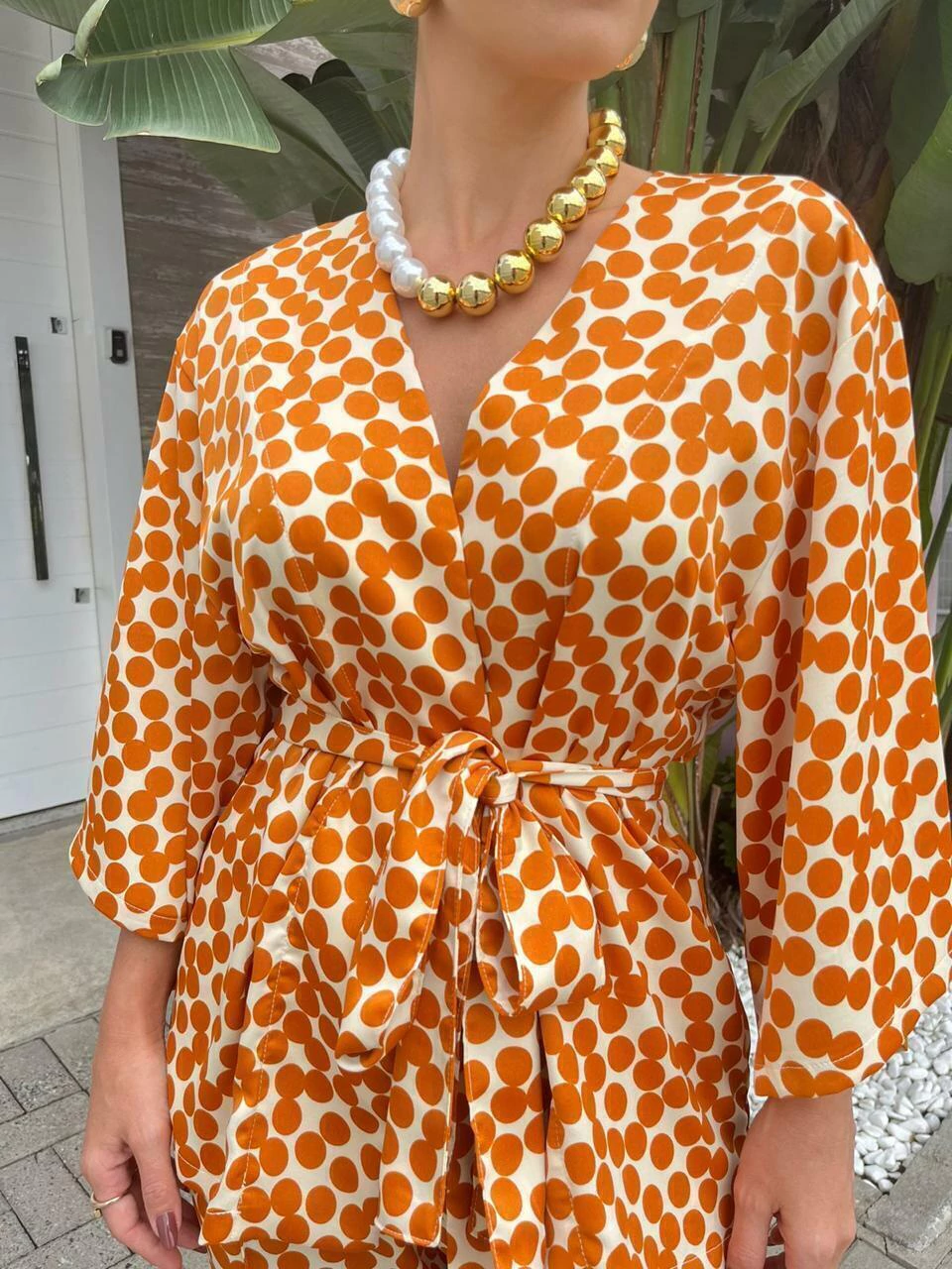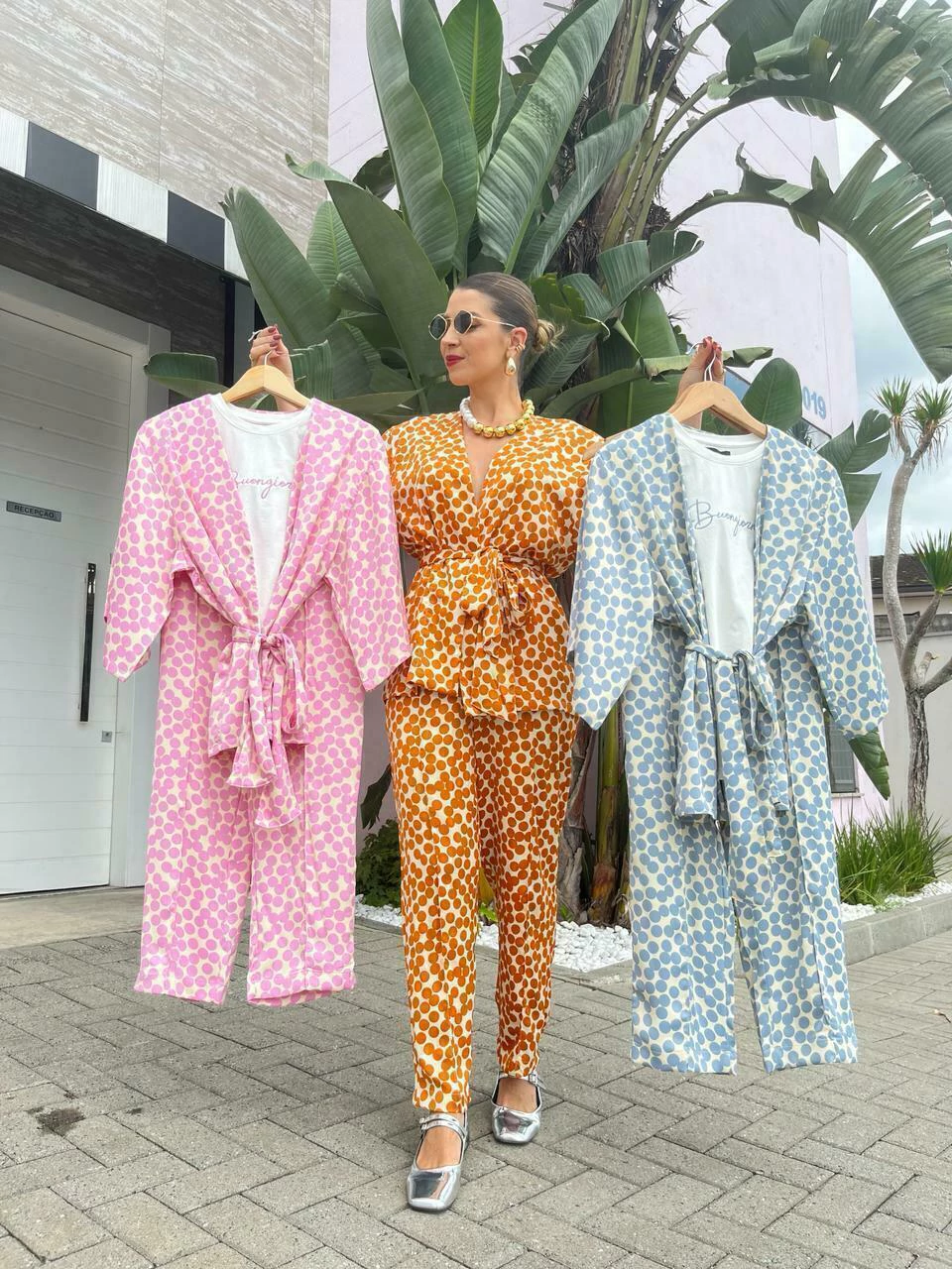 O Kimono Lavie é uma peça delicadamente confeccionada em um tecido leve, com um sutil acabamento acetinado que adiciona um toque de elegância. Sua modelagem é ampla, proporcionando conforto, e as mangas 3/4 adicionam característica atemporal. Com uma faixa para amarração, o kimono pode ser facilmente ajustado para criar uma silhueta mais definida. A estampa de poá contemporânea em cores sofisticadas confere um ar moderno à peça, que pode ser usada de diversas maneiras: como uma terceira peça combinada com t-shirt ou como peça principal.