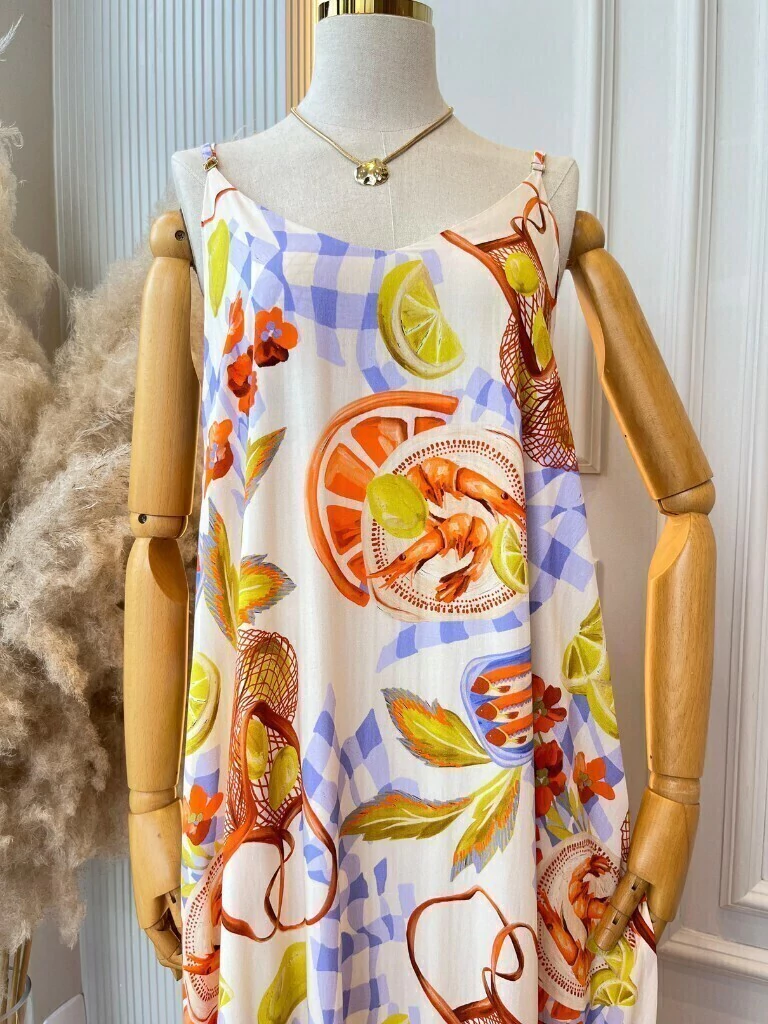 O Vestido Toscana é uma excelente escolha para o verão, confeccionado em 100% viscose, que proporciona leveza, suavidade e frescor. Com decote V e alças reguláveis, oferece um ajuste perfeito ao corpo.
