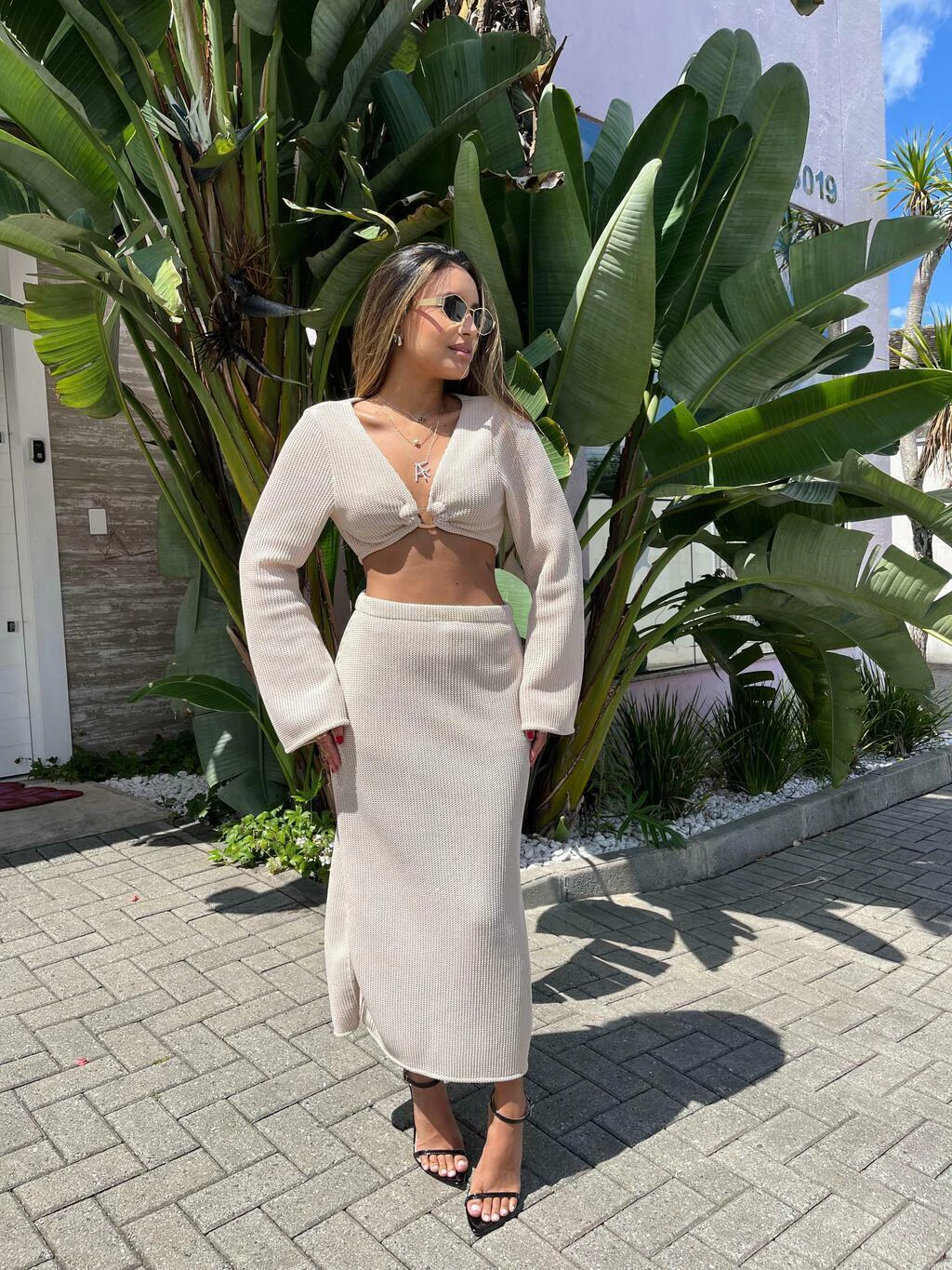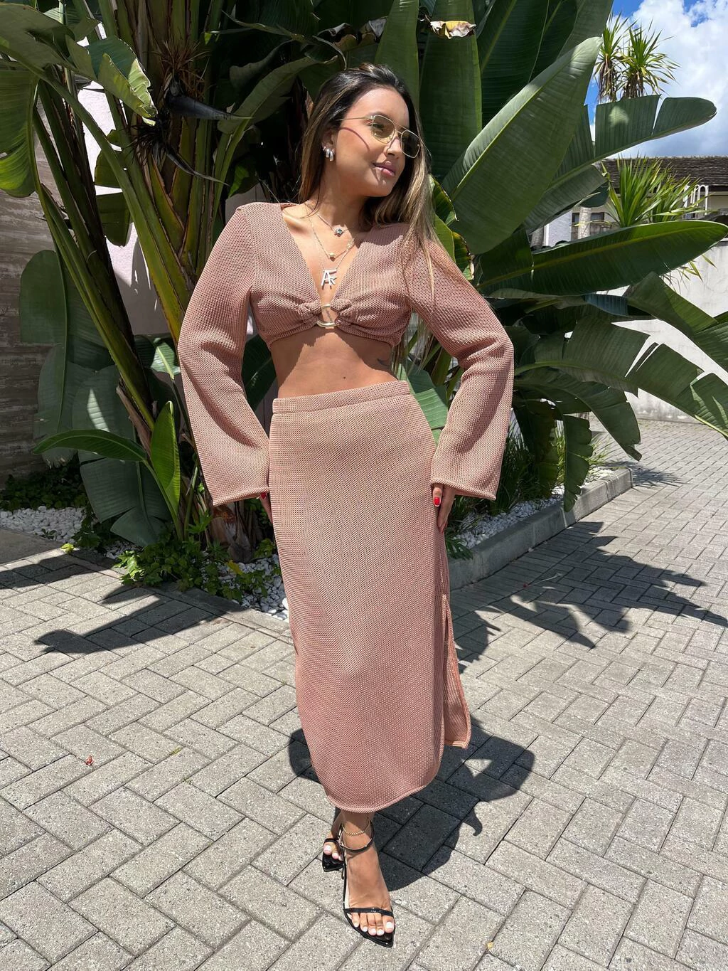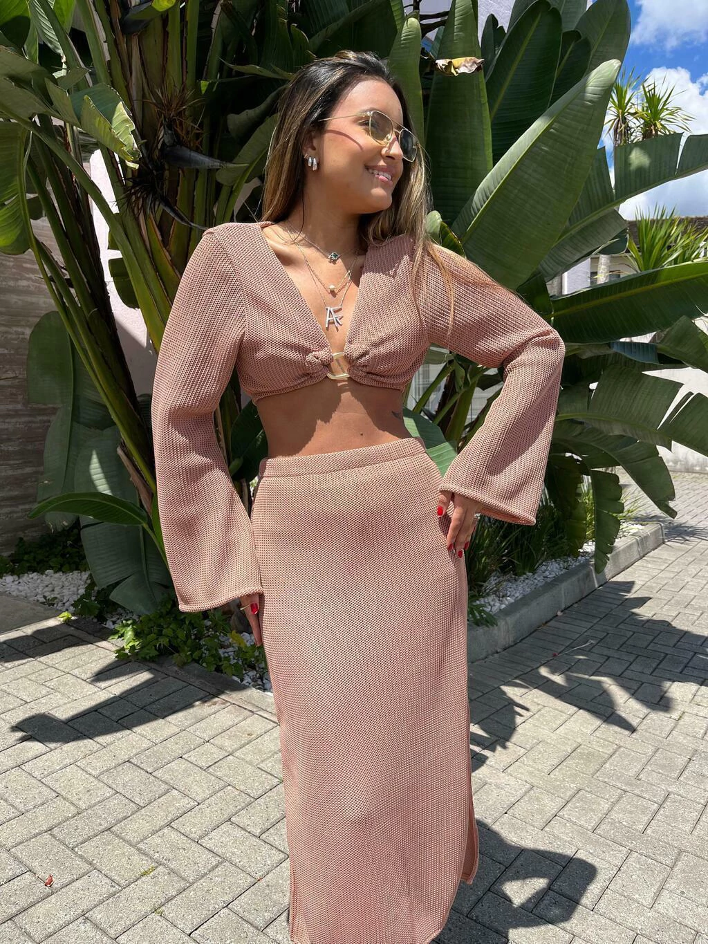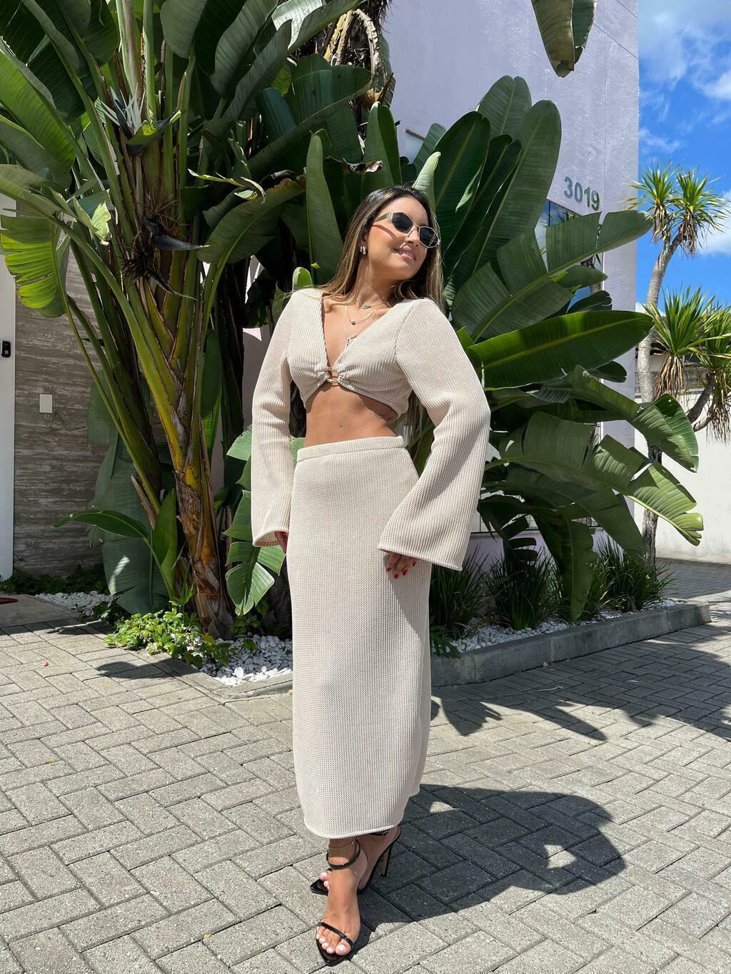 A Saia Trancoso é a escolha perfeita para quem busca sofisticação e conforto em uma só peça. Confeccionada em um tecido que lembra o tricot, ela possui uma trama mais fechada que agrega charme artesanal e um toque elegante ao visual. A modelagem midi e slim valoriza a silhueta, proporcionando um caimento ajustado e moderno. Para garantir o máximo conforto, a peça conta com um forro de viscolycra em formato de short, permitindo liberdade de movimento e segurança no uso.