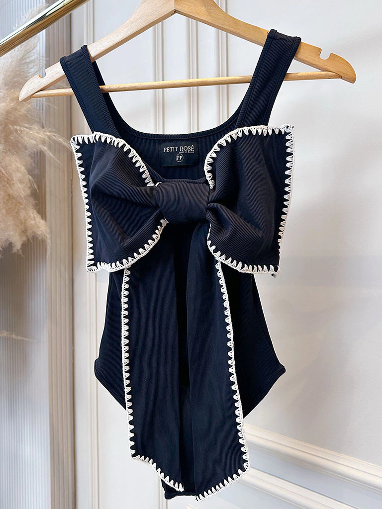 O body Emília é feito em poliamida, tendo a mesma modelagem e tecido do nosso body lindssey. O seu diferencial fica por conta do laço do mesmo tecido com bordado manual ao redor, um bordado contrastante que destaca o contorno e detalhes do laço. Além do conforto, ele possui uma modelagem incrível que ajusta ao corpo, e fechamento com botões de pressão no gancho o que facilita na hora de vestir a peça.! Para ficar por dentro de todas as novidades do mundo Petit Rosè siga as nossas redes sociais @amopetitrose.