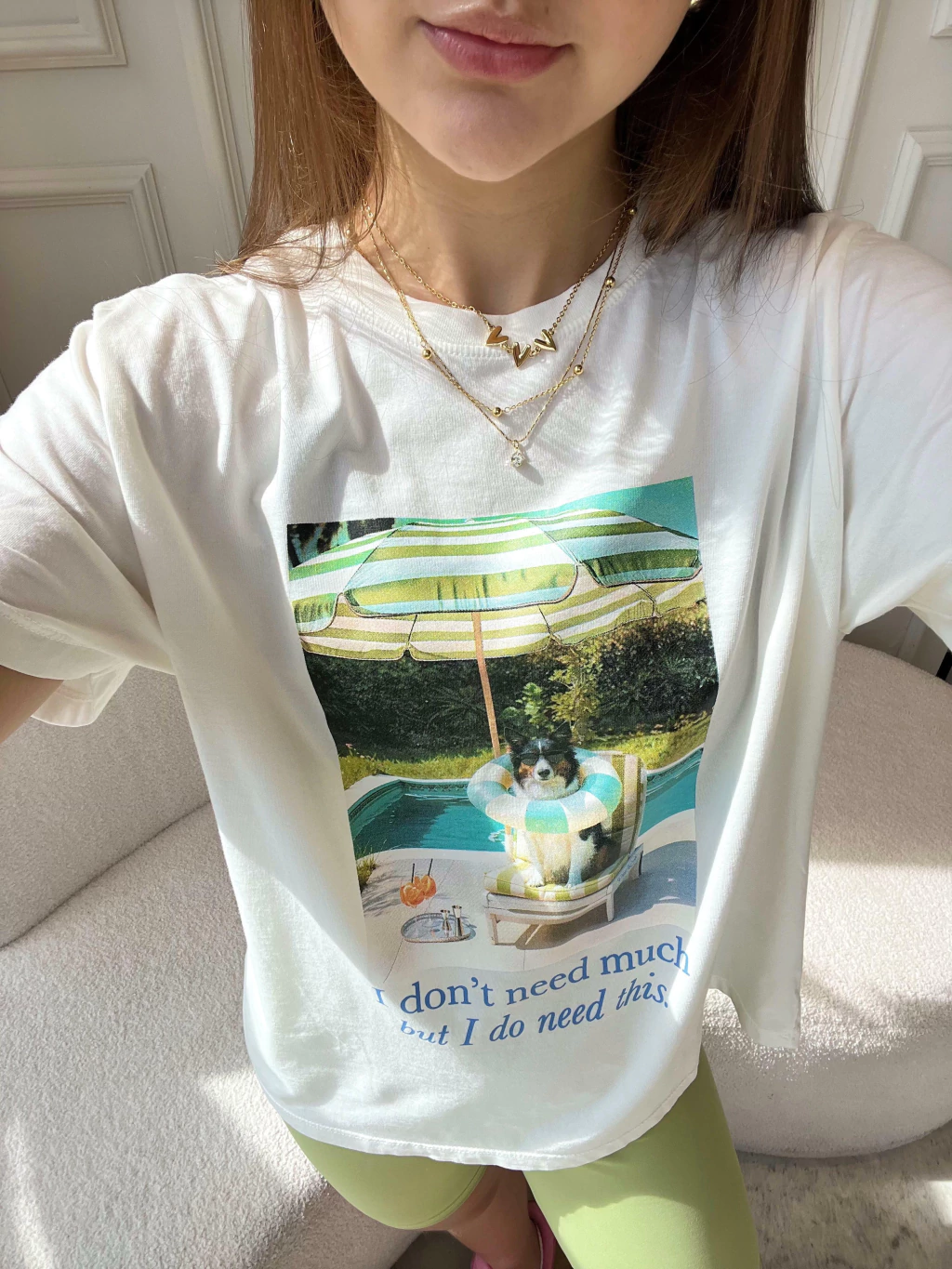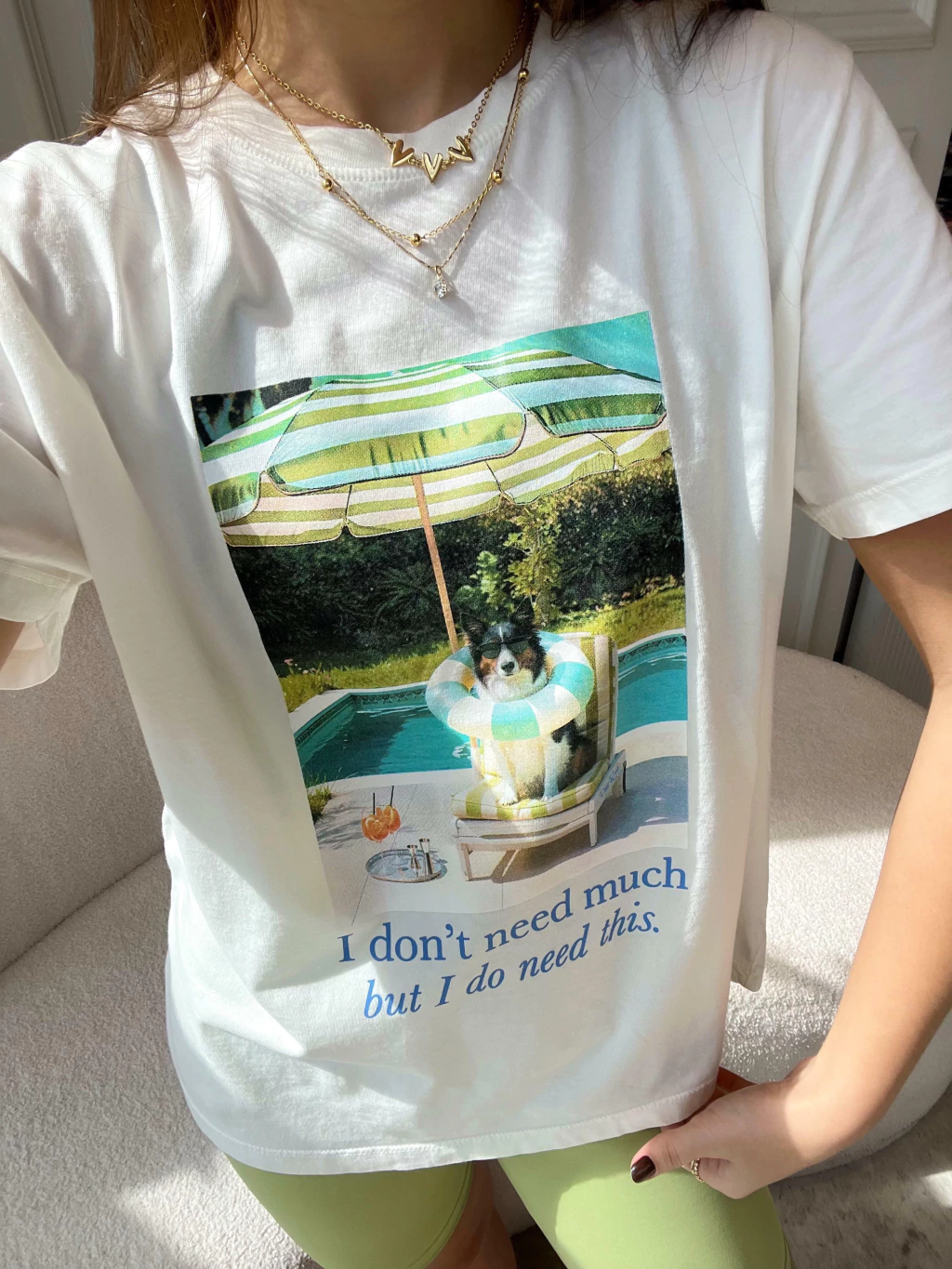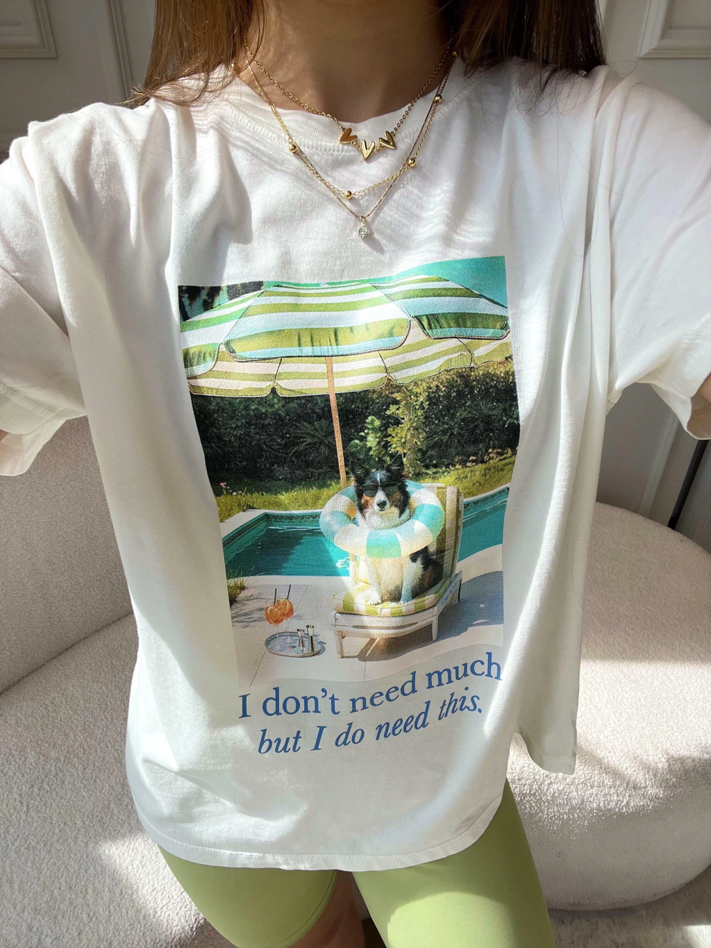 A t-shirt que traduz com humor o mood que todas nós conhecemos: "Eu não preciso de muito... mas preciso disso!". Com um visual fresh e irreverente, a T-shirt I Need This conquista à primeira vista com sua estampa fotográfica exclusiva. Ela tem toque leve, caimento fluido e modelagem básica, perfeita para composições despojadas. Ela representa o lifestyle leve, divertido e despretensiosamente chic que é a essência da Petit Rosè. Para ficar por dentro de todas as novidades do mundo Petit Rosè siga as nossas redes sociais @amopetitrose. Avalie seu look no nosso site e receba um cupom de desconto exclusivo!