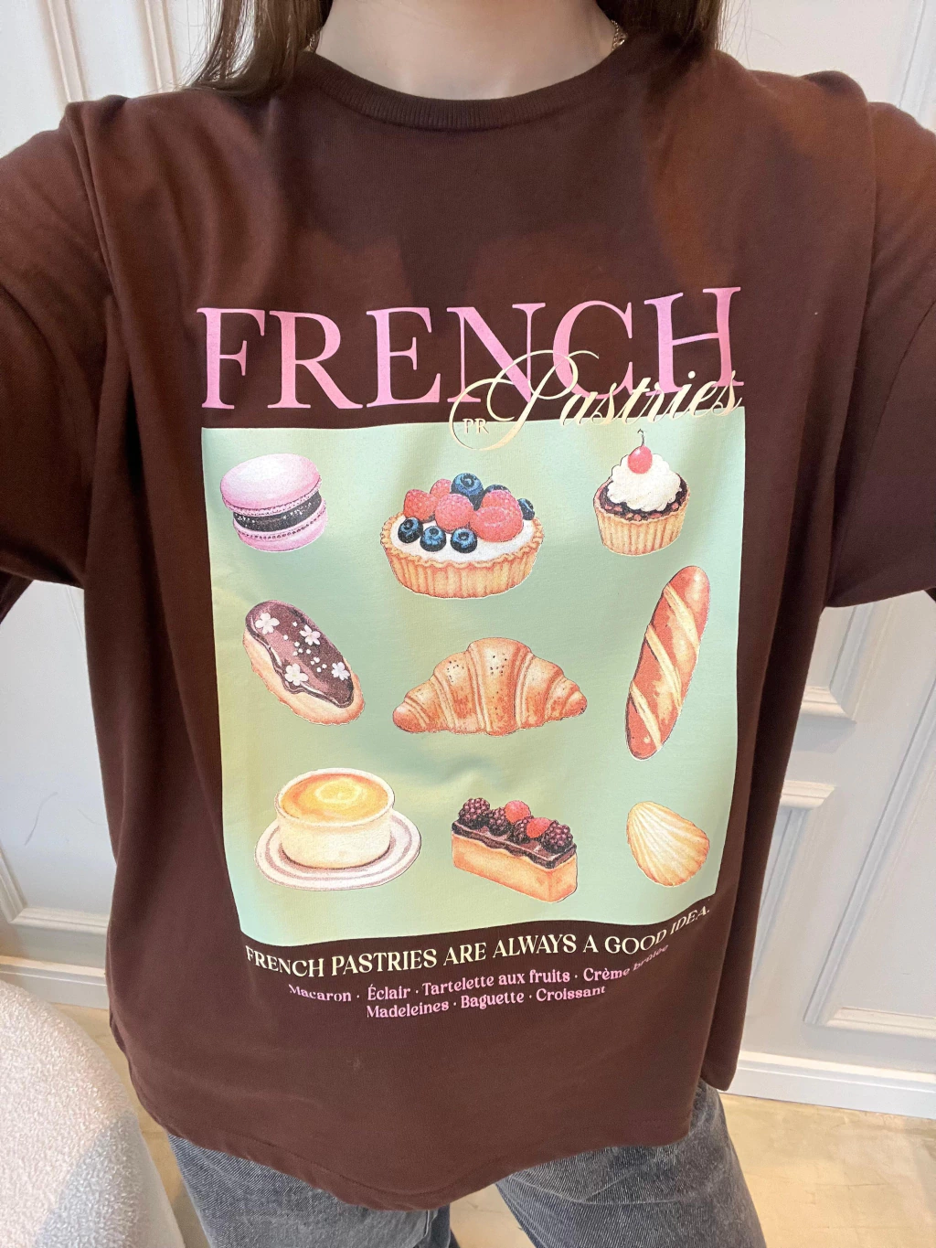 Doce e charmosa, a T-shirt Color French Pastries é uma peça que traduz o estilo casual com um toque parisiense. Confeccionada em algodão de toque suave, traz estampa exclusiva inspirada nas pâtisseries francesas, um mix delicado de cores e referências gastronômicas que tornam o visual leve e divertido. Com modelagem reta e caimento confortável, é perfeita para compor produções descontraídas com jeans, saias ou shorts. Ideal para quem ama unir conforto, estilo e um mood “café em Paris”. Para ficar por dentro de todas as novidades aqui da Petit Rosè siga as nossas redes sociais @amopetitrose. Avalie seu look no nosso site e receba um cupom de desconto exclusivo!