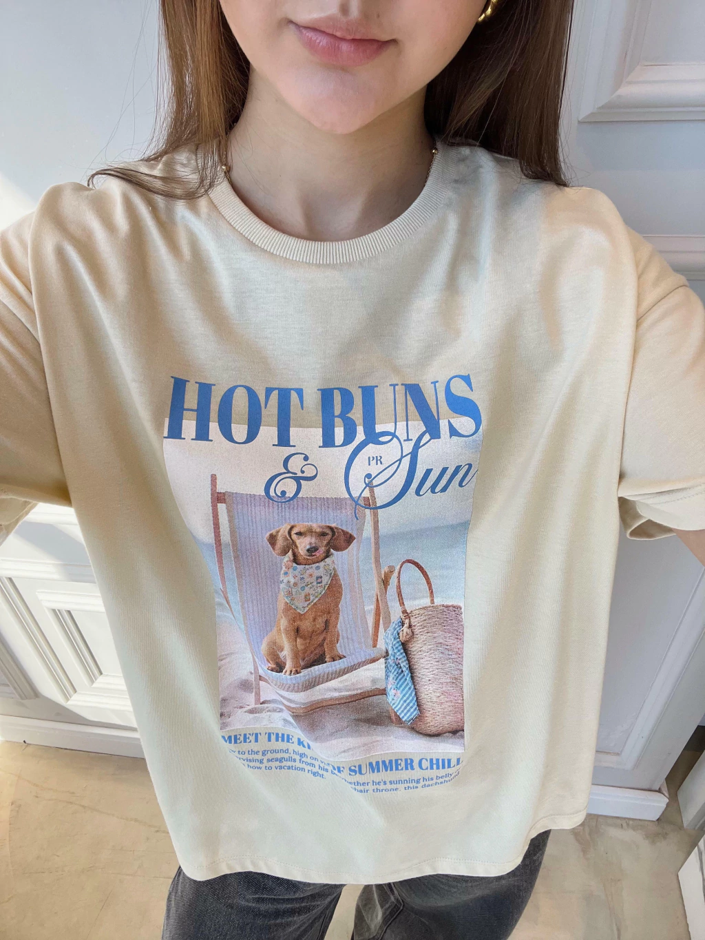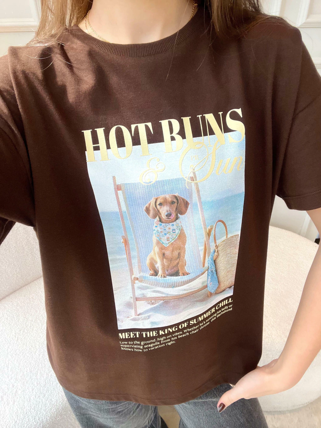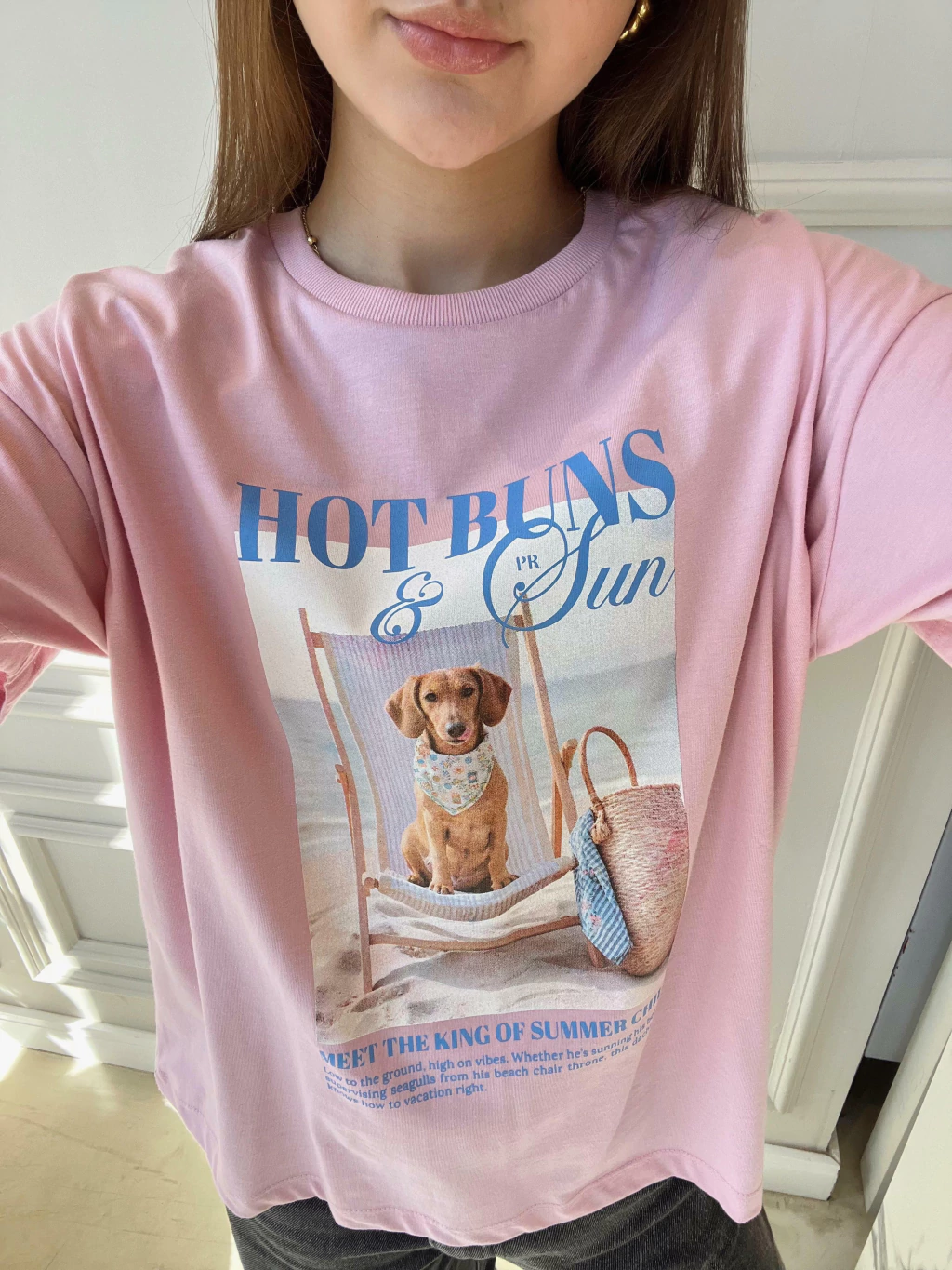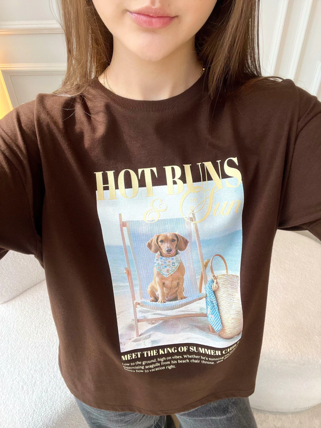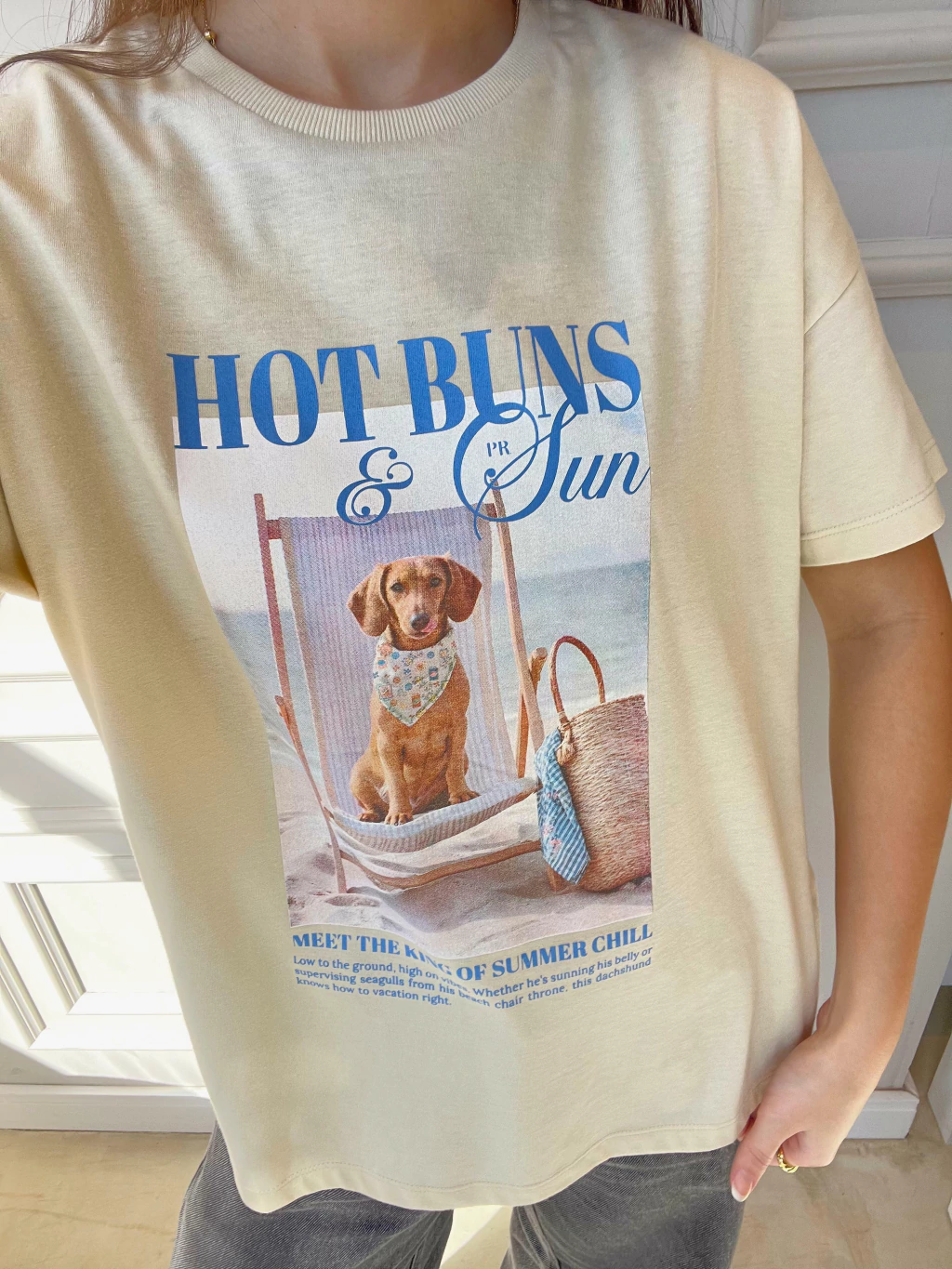 Descontraída, divertida e com um toque de irreverência solar, a T-shirt Hot Buns é a escolha perfeita para quem leva o verão (e o estilo!) com bom humor. Com toque macio e caimento leve, ela traz estampa exclusiva de um simpático dachshund curtindo a brisa do mar em sua espreguiçadeira. A modelagem é básica, com decote redondo e manga curta, ideal para combinações com shorts, saias ou sobreposições com peças de alfaiataria. Uma peça que vai direto pro look do dia — e pro feed também! Para ficar por dentro de todas as novidades do mundo Petit Rosè siga as nossas redes sociais @amopetitrose. Avalie seu look no nosso site e receba um cupom de desconto exclusivo!