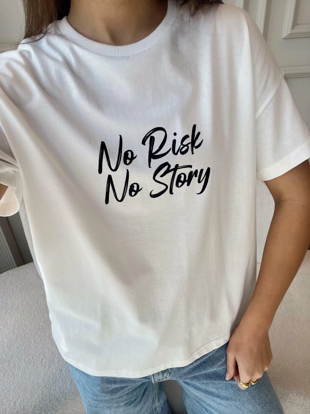 A T-shirt Color No Risk No Story é uma peça cheia de atitude que combina conforto, estilo e uma mensagem poderosa. Confeccionada em algodão 100%, ela garante respirabilidade e toque macio, tornando-se indispensável para o dia a dia. Sua modelagem reta e versátil se adapta a diferentes estilos. O destaque fica para a estampa No Risk No Story, que traduz uma proposta fashion com inspiração no lifestyle contemporâneo, reforçando autenticidade e confiança. Ideal para composições que vão do casual com jeans e tênis a produções mais fashionistas com alfaiataria ou saias midi. Para ficar por dentro de todas as novidades do mundo Petit Rosè siga as nossas redes sociais @amopetitrose. Avalie seu look no nosso site e receba um cupom de desconto exclusivo!