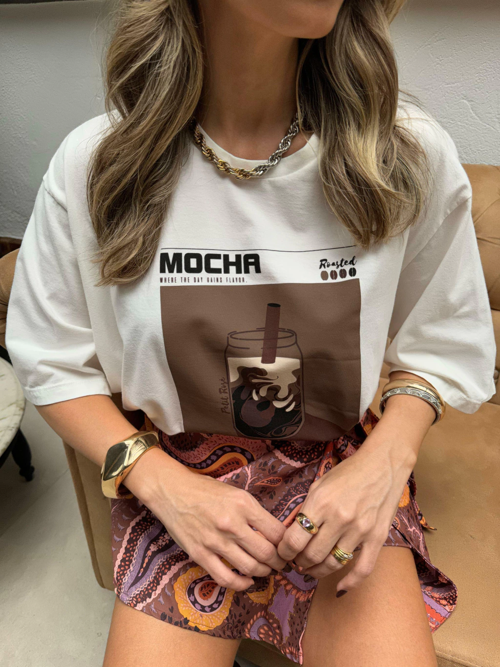 T-Shirt Over com decote redondo, manga curta e estampa frontal. A peça possui modelagem básica, ficando mais certinha no corpo. Super democrática e versátil, as Tee são sinônimos de beleza e conforto. Para ficar por dentro de todas as novidades do mundo Petit Rosè siga as nossas redes sociais @amopetitrose.