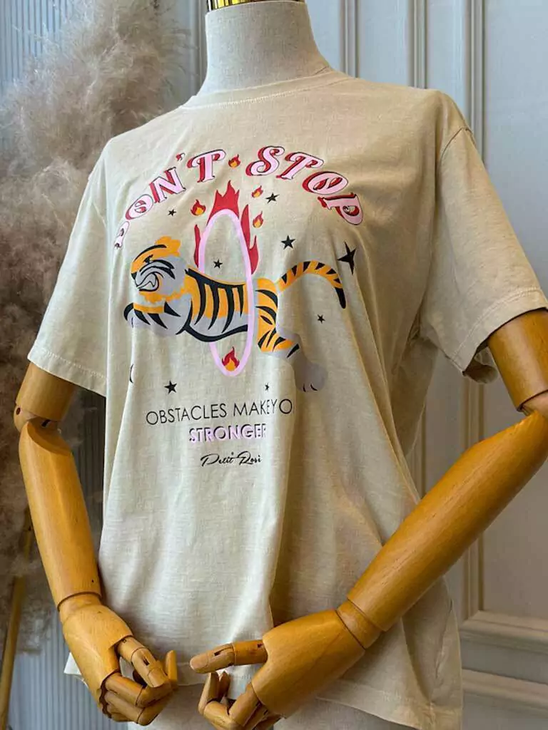 T-Shirt Feminina Básica Estampada Tigre, com decote redondo, manga curta e estampa frontal. Possui modelagem mais ajustada ao corpo. Tee é sinônimo de estilo e conforto. A dica da Petit é combinar com a Calça Sky, deixando o look ainda mais estiloso! Para ficar por dentro de todas as novidades do mundo Petit Rosè siga as nossas redes sociais @amopetitrose.