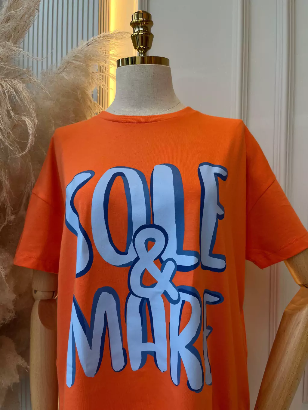T-Shirt Sole&Mare com decote redondo, manga curta e estampa frontal. Possui modelagem mais ajustada ao corpo. Tee é sinônimo de estilo e conforto! Para ficar por dentro de todas as novidades do mundo Petit Rosè siga as nossas redes sociais @amopetitrose.