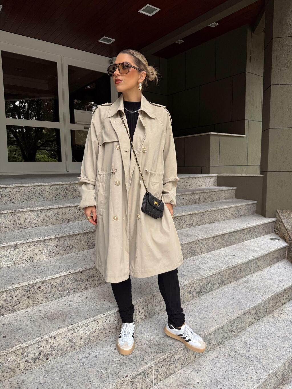 O Trench Coat é aquela peça que impõe presença. Confeccionado em leather com textura que lembra o toque aveludado da camurça e acabamento sofisticado, ele traz um visual poderoso e atemporal. A modelagem alongada com ajustes na cintura e nas mangas valoriza a silhueta e permite brincar com proporções. Possui abotoamento duplo, maxi lapela, bolsos frontais, ponteiras nos cordões e forro interno completo. É o casaco do momento — transforma qualquer look básico em uma produção fashionista. Para ficar por dentro de todas as novidades do mundo Petit Rosè siga as nossas redes sociais @amopetitrose. Avalie seu look no nosso site e receba um cupom de desconto exclusivo!