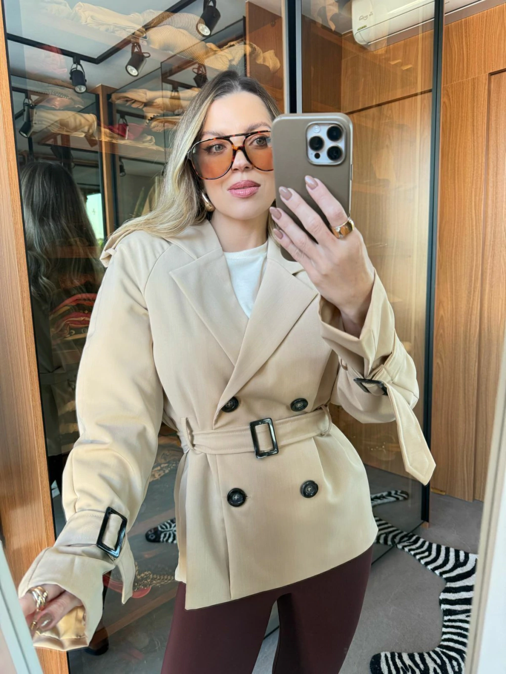 Um clássico repensado com suavidade. Esse trench coat tem a estrutura de um ícone atemporal, mas com alma leve: confeccionado em tecido de alfaiataria premium, ele é fluido e macio, ele traz movimento ao look sem perder a elegância. Com lapela marcante, fechamento transpassado, cinto e punhos com fivelas, ele combina o visual urbano-chic com o conforto do dia a dia. Uma peça versátil e moderna, perfeita pra quem quer estar impecável sem esforço. Ideal pra compor produções sofisticadas, do jeans à alfaiataria, com uma pitada de atitude e muito estilo. Para ficar por dentro de todas as novidades e lançamentos da Petit, é só seguir as nossas redes sociais @amopetitrose. Avalie seu look no nosso site e receba um cupom de desconto exclusivo!