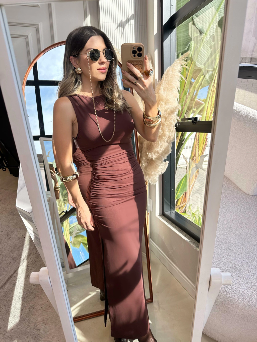 Elegância e conforto se unem no vestido Mariana midi alongado em viva light, com drapeado impecável, modelagem justa que valoriza o corpo e fenda lateral para um toque sofisticado. Para ficar por dentro de todas as novidades e lançamentos da Petit, é só seguir as nossas redes sociais @amopetitrose.