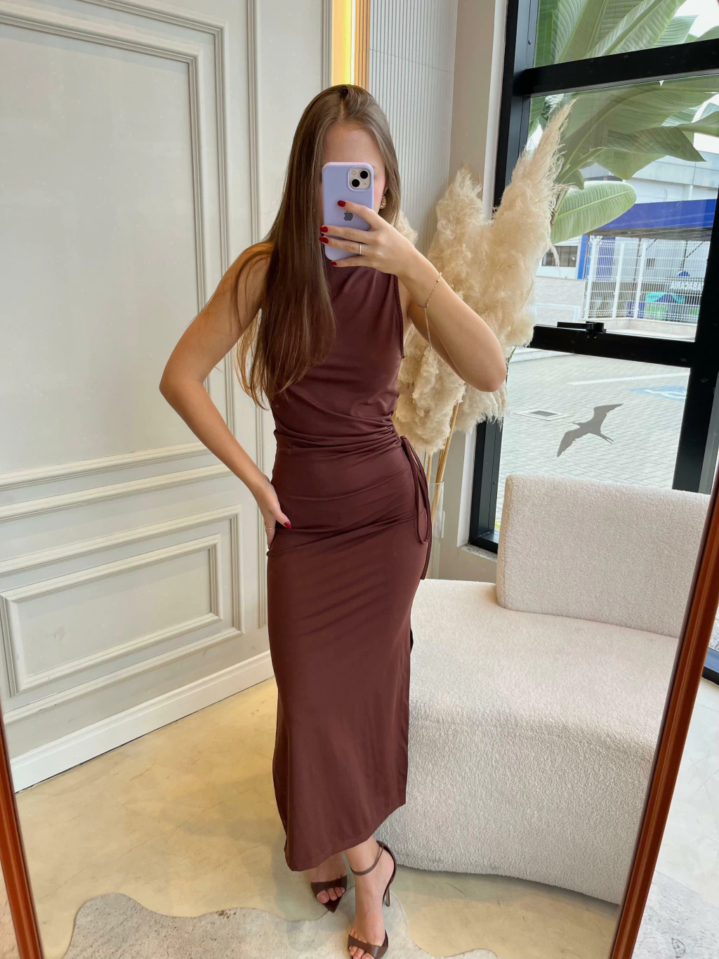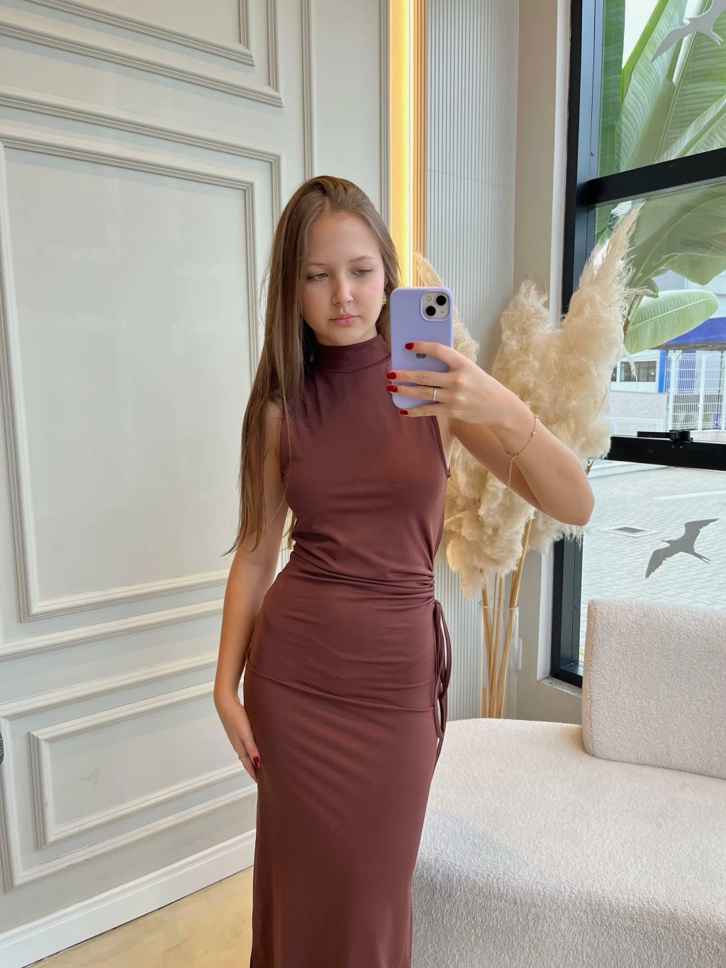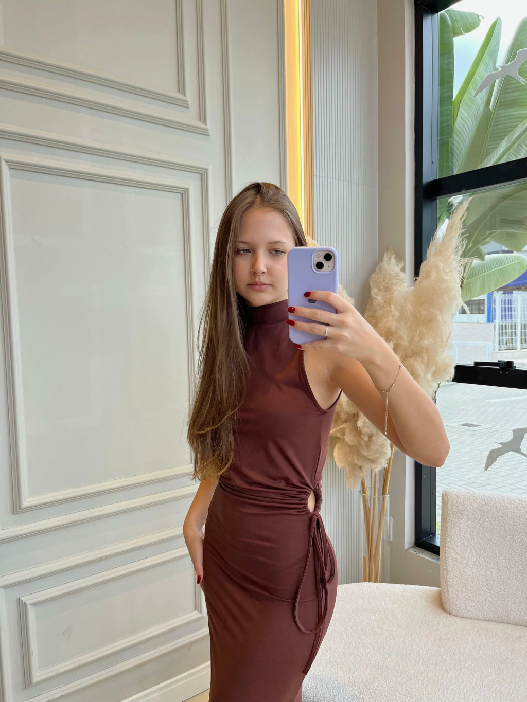 Vestido Milena em poliamida premium, com modelagem moderna, gola alta e amarração lateral ajustável. Versátil e confortável, vai do casual ao sofisticado com estilo e praticidade. Para ficar por dentro de todas as novidades e lançamentos da Petit, é só seguir as nossas redes sociais @amopetitrose.
